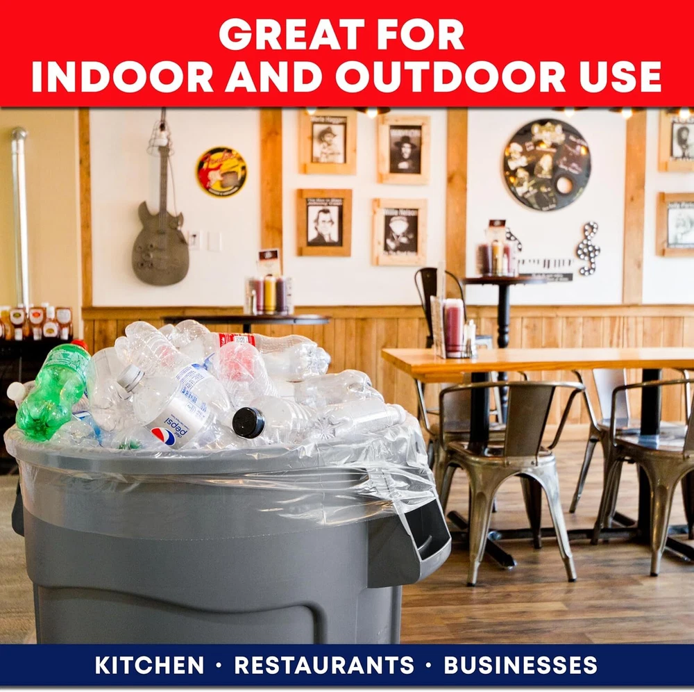 These oversized garbage bags are crafted from quality plastic materials, making them perfect for holding all your lightweight and moderate trash. With a durable design, these 64-65 gallon trash bags can be used at home, in the office, or as liners for outdoor trash cans. Extra large - Keep your cans clean - our large heavy duty trash bags are just the right size for lining your big outdoor toter cans, rollaway bins, and drum cans. Come garbage day, just pull out the bag and you’re good to go! Star seal bottom - Our heavy duty trash bags feature a durable gathered seal at the bottom, designed to hold more weight and prevent leakage. No need to double bag your trash when you use our big trash bags! Heavy duty capacity, These heavy duty trash bags are designed to hold more garbage and accommodate large volumes of waste, which means less bags used and fewer trips to the dumpster. Contractor bags perfect for job sites, construction, and yard waste bags. These heavy duty trash bags are designed to hold more garbage and accommodate large volumes of waste, which means less bags used and fewer trips to the dumpster. Contractor bags perfect for job sites, construction, and yard waste bags.