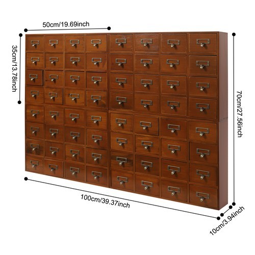64-Drawer Storage Cabinet Pine Wood Furniture Tabletop Storage Box For Home Application It can be used in a pharmacy, office, porch, living room, study, or bedroom to store medicine, jewelry, headbands, art supplies, cards, notes, cosmetics, tea bags, crafts, lipstick, photos, oils, office supplies, files, coffee utensils, and more. Specifications Color: Brown Material: Pine Wood, Plywood, Zinc Alloy Process: Spray Paint, Aging Shape: Rectangle Style: Vintage Assembly Required: No Mounting Type: Tabletop Mount Each Cabinet Load Capacity: 10kg/22.05lbs Number of Cabinets: 4 Number of Drawers: 64 Each 16-drawer Cabinet Size (L*H) : 50*35cm/19.69*13.78in Overall Product Size: 100*10*70cm/39.37*3.94*27.56in Package Size: 61.5*40*56.5cm/24.21*15.75*22.24in Gross Weight: 22kg/48.5lbs Net Weight: 20kg/44.09lbs Package Included 4*16-drawer Cabinets Payment Delivery details Terms of sales About us Contact us Payment We accept ebay payment 。 Fees such as import duties, taxes are not included in the item price or shipping costs. These charges are the buyer's responsibility. Delivery details Shipping: 2-9 working days to: USA Terms of sales We maintain high standards of excellence and strive for hundred percent customer satisfaction. Feedback is very important to us. We hope that you contact us immediately before you give neutral or negative feedback, so that we can address your concerns. It is impossible to address issues if we do not know about them! About us Your satis faction is our ultimate goal. We work hard to earn your trust and future business. Our certified technicians have tested each item before shipping. The unit comes with 1 year limited warranty on all manufacturing defects. a) If you receive a defective item, you may return it or ask for a discount. Please contact us within 14 days after you receive the package. b) What you returned must be intact and in its original packaging as re? u. Customer is responsible for shipping costs of the returned item. c) We will cover the cost of shipping back t with the shipping rate indicated in the registration page. We will send you a new unit or refund the full payment you paid. Thank you. Contact us Business Hour Business Hour: Monday To Friday: 8:30 AM to 5:00 PM (Beijing China time) Due to time zones, our reply to your questions may not be immediately. But within above working time, we will reply your email within 24 hours. If it's non-workdays, please kindly be patient and wait till Monday. Please contact us with ebay message. Please feel free to contact us if you have any questions. Monday To Friday: 8:30 AM to 5:00 PM (Beijing China time) Due to time zones, our reply to your questions may not be immediately. But within above working time, we will reply your email within 24 hours. If it's non-workdays, please kindly be patient and wait till Monday. Please contact us with ebay message. Please feel free to contact us if you have any questions. Brand GDRASUYA10 Item Height 27.56 in Item Length 39.37 in Item Width 3.94 in Type Storage Cabinet Material Pine Wood, Plywood, Zinc Alloy Door Style Shaker Color Brown Mounting Tabletop Mount Features Handles Number of Drawers 64 On Mar 2, 2026 at 19:16:41 PST, seller added the following information:
