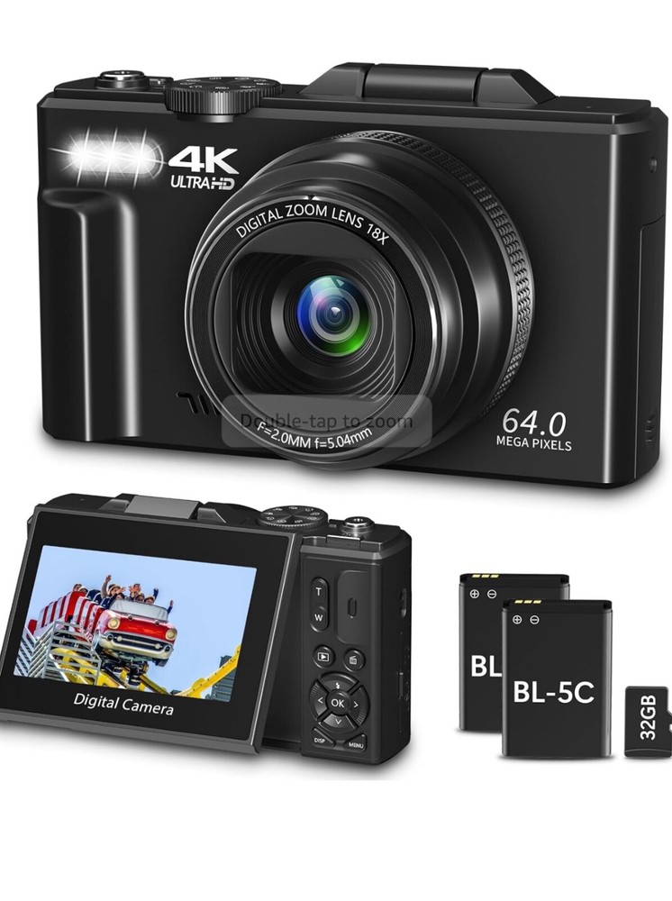 64MP Digital Camera for Photography and Video: 4K Vlogging Camera for YouTube with 3'' Flip Screen and 32GB TF Card, 16X Digital Zoom Digital Camera for Gift (Black