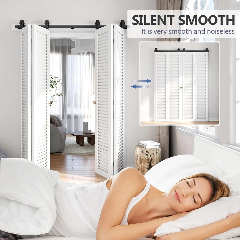 64in Bifold Sliding Door Track,Sliding barn door hardware kit,Black,Brand New-