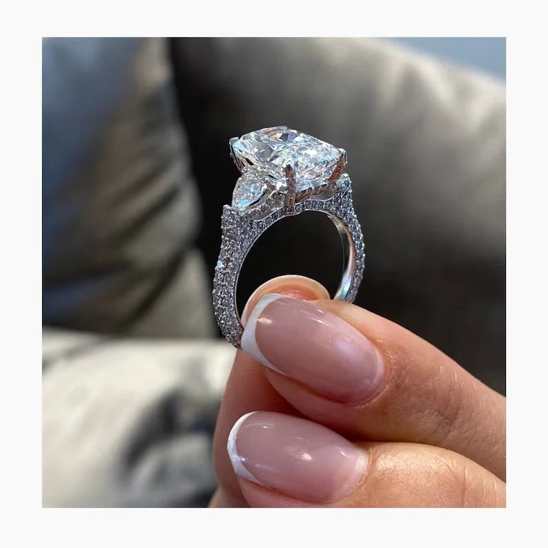 Forever Diamonds IN Luxury Jewelry for Timeless Elegance Product Details Attribute Details Total Carat Weight 6.50 Carat Center Stone Weight 6.00 Carat Accent Stones Weight 0.50 Carat Metal Type White Gold Metal Purity Solid 14K Diamond Type Lab Grown/CVD Metal Authenticity BIS Hallmarked Stamp Clarity VS1 Color F Certification Authenticated by GIA/IGI Certified (Electronic Copy) Main Stone Shape Radiant Cut SKU ETSYV-461 Shipping Policy Orders ship within 5-7 days after payment & ring size confirmation. Tracking details are emailed upon shipment. International delivery takes 10-15 business days , subject to customs clearance. Customs duties and charges are the buyer's responsibility. Payment Policy Payments accepted via PayPal . All major credit cards are accepted through PayPal. Payments should be made within 3 days of purchase. Return Policy 30-day money-back guarantee . Returned items must have tracking details. Returns are invalid if the product is damaged, tags removed, or used. About Us At Sapphirejwells-store , we specialize in high-end designer jewelry that combines timeless elegance with modern craftsmanship. Our pieces are crafted with precision and care, ensuring you receive the finest quality at competitive prices. Best Quality - Guaranteed Low Prices. Free Luxury Gift Box. Friendly Customer Service. Worldwide Shipping. Feedback We value your feedback! If you have any concerns, please contact us before leaving a review. Your satisfaction is our priority. © 2025 Sapphirejwells-store . All rights reserved.