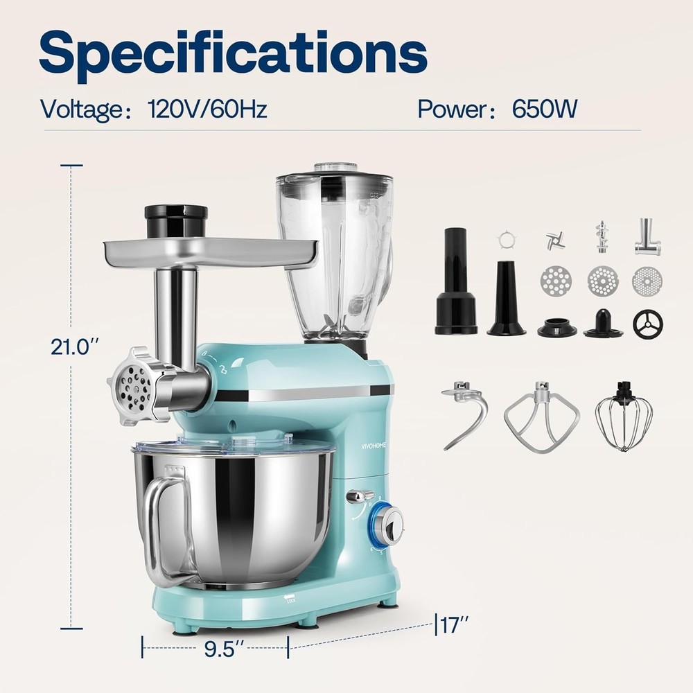 6.5QT 660W Stand Mixer with 6-Speed Tilt-Head & Accessories