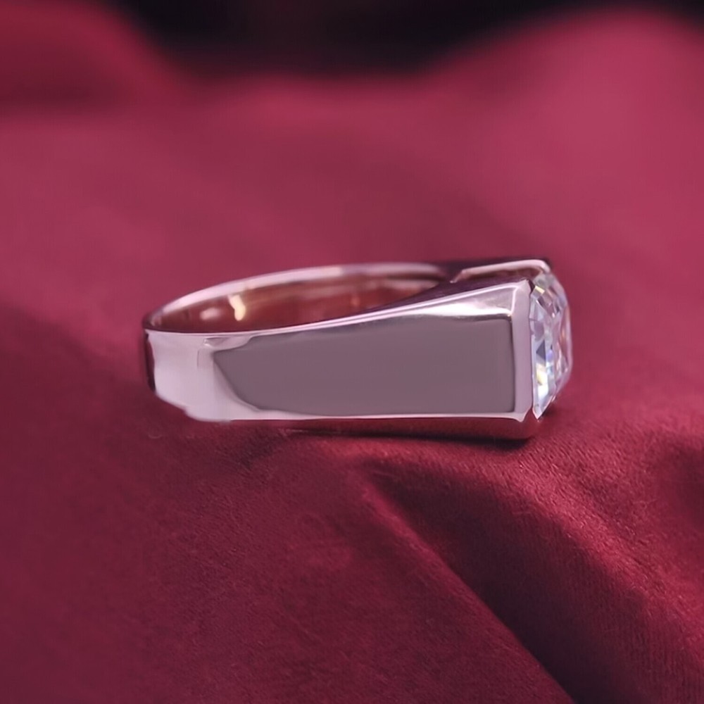 4.15 Ct Certified Emerald Cut Off White Diamond Ring 925 Silver Festival Gift