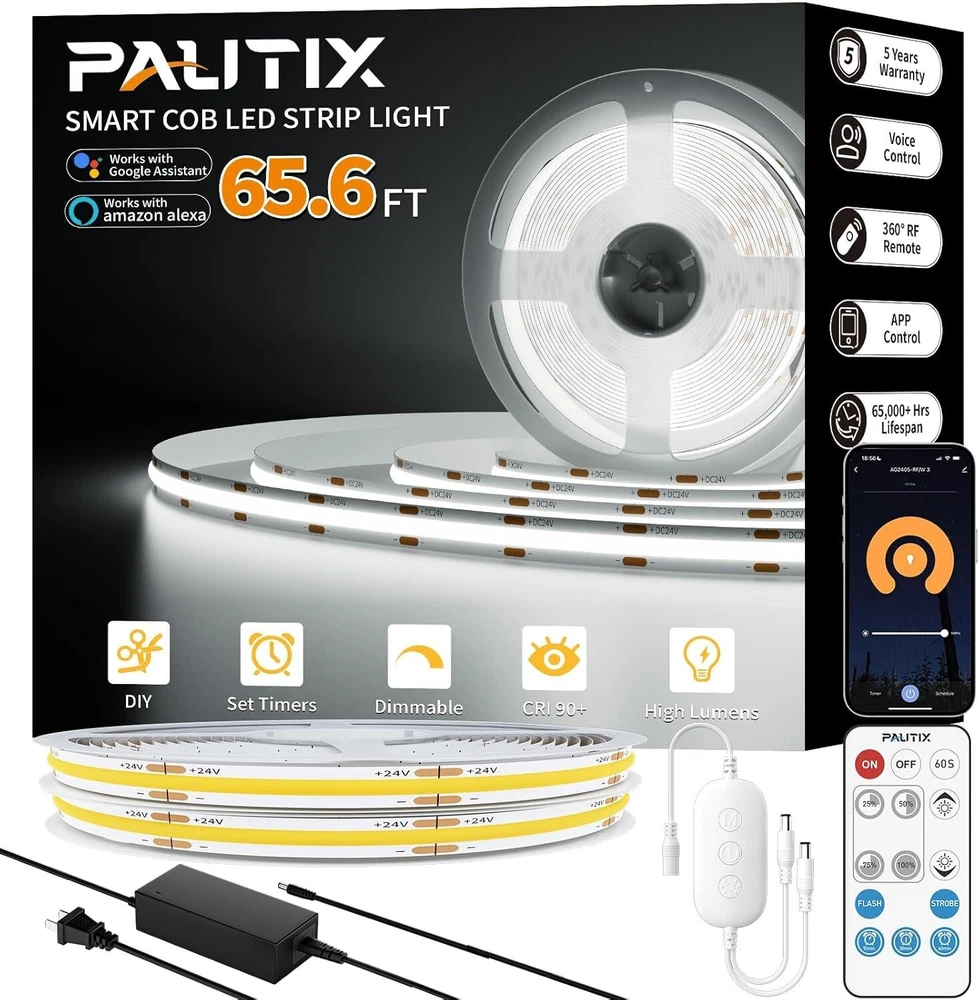 65.6ft COB LED Strip Light - Voice-Controlled, Dimmable, Daylight White 6000K ‹ › ‹ › ‹ › ‹ › ‹ › ‹ › ‹ › ‹ › ‹ › 65.6ft COB LED Strip Light Illuminate your spaces with the unparalleled brilliance of our 65.6ft COB LED Strip Light . Designed for those who appreciate both aesthetic beauty and functional excellence, this strip light offers voice control, dimmable brightness, and a pristine daylight white color temperature of 6000K. Features: Super Bright: Boasting an impressive total of 9600 high-quality LEDs , enjoy even lighting without dark spots. Long Length: An extra-long 65.6 feet allows for expansive coverage to decorate larger spaces effortlessly. Voice Control: Compatible with Alexa , Google Assistant , Tuya , and Smart Life for complete hands-free operation. UL Listed for Safety: Operating at a low 24V voltage, the strip is safe to touch and made from lead-free materials. DIY Flexibility: Features a cuttable design at every 50mm (1.97 inches), allowing easy customization to fit any space. Durable Design: Equipped with double-layer pure copper PCB for enhanced conductivity, heat dissipation, and longevity of over 65,000 hours . Benefits: Enjoy superior lighting quality with a color rendering index of up to 93+ , ensuring authentic color reproduction. Elevate your home or business ambiance with ease, perfect for high-end clubs, under cabinets, dressing tables, and more. Simplify your lighting control with hands-free voice commands, adjusting brightness and modes with mere words. Transform any environment into a stylish haven, whether for entertaining guests or for personal use. Why Choose Our COB LED Strip Light? Unlike traditional SMD LED strip lights, our COB technology ensures a seamless and uniform lighting experience. Perfect for the discerning decorator who values quality, versatility, and aesthetics. Create an immersive atmosphere in any area of your home or workspace. Order your 65.6ft COB LED Strip Light today and experience the art of illumination like never before! Packaging and Service: Included in your purchase: 2 × 32.8ft/10m COB LED strip lights 1 × RF remote control & controller kit 1 × DC24V 96W power supply 1 × user manual For assistance, contact our professional support team, available to help you within 24 hours . Shipping Free & Fast Shipping - We offer free shipping to most of the USA with a normal delivery time of 3-7 days. However, due to the current situation, additional delivery time (up to 3 weeks) may be required for some items. Alternative Carriers - We may use alternative carriers (e.g. USPS, FedEx, UPS, etc.) to ensure your package arrives safely and on time. Due to the use of multiple carriers, we are unable to provide a tracking number automatically. Handling Time - Orders are processed and shipped within 1-2 business days of receiving cleared payment. Shipping Restrictions - Shipping to Alaska, Hawaii, Puerto Rico, Guam, and other US territories may incur shipping charges or delivery restrictions. Please contact us before ordering, or your order can be refunded/cancelled. State Restrictions - There may be restrictions based on your state of purchase. For example, certain items may not be shipped to California due to state regulations. Contact for Tracking Updates - If you require tracking updates or have any concerns about the delivery of your order, please feel free to contact us, and we will be happy to assist you. Return 30-Day Hassle-Free Returns - We want you to be completely satisfied with your purchase. If you are not, you can return the item within 30 days of receiving it for a full refund or exchange. Easy Return Process - To start a return, simply contact us and we will provide you with a prepaid return shipping label and detailed instructions. Restocking Fee - There are no restocking fees for returns. However, the buyer is responsible for return shipping costs if the return is not due to a seller's error. Refund Processing Time - Refunds will be processed within 5 business days of receiving the returned item in its original condition. Payment We accept all major credit cards, PayPal, and Apple Pay for your convenience. Your payment information is secure and encrypted to ensure a safe and seamless transaction. Please complete your payment within 3 days of purchase to avoid any delays in shipping. Feedback Your feedback is extremely important to us. We strive to provide the best products and customer service possible. If you are satisfied with your purchase, please take a moment to leave us a positive review. If you have any concerns or issues with your order, please contact us before leaving negative feedback. We are committed to resolving any problems and ensuring your satisfaction. Contact Us If you have any questions or concerns, please feel free to reach out to our customer support team. You can contact us through the eBay messaging system. We are available Monday to Friday, 9:00 am to 5:00 pm EST, and we will do our best to respond to your inquiry within 24 hours. Buy it now and enjoy a pleasant shopping experience! UPC: Not Set Size: 65.6ft/20m Item Height: Not Set Lumens: Super Bright Power Consumption: 96W Unit Quantity: 1.92 lbs Occasion: Multipurpose Features: Dimmable,Flexible,Cuttable,Connectable Light Color: Daylight White Control Style: Voice Department: Unisex Baby & Toddler,Kids,Teens,Adults Theme: Not Set Room: Bedroom,Dining Room,Home Office/Study,Kitchen,Living Room Material: Copper,Plastic Character: Not Set Labels & Certifications: Not Set Brand: Unbranded Type: LED Strip Lighting Technology: LED Light Shape: Strip Installation Area: Indoor Sensor Type: None Color: White Power Source: Corded Cord Color: White Number of Settings: 1 LED String/Strip Type: COB Energy Star: Not Set MPN: Not Set EC Range: Not Set Voltage: 24 V LED Chip Code: Not Set Output Voltage: Not Set Manufacturer: Not Set Character Family: Not Set IP Rating: Not Set Amperage: Not Set Number of Lights: 9600 Coun