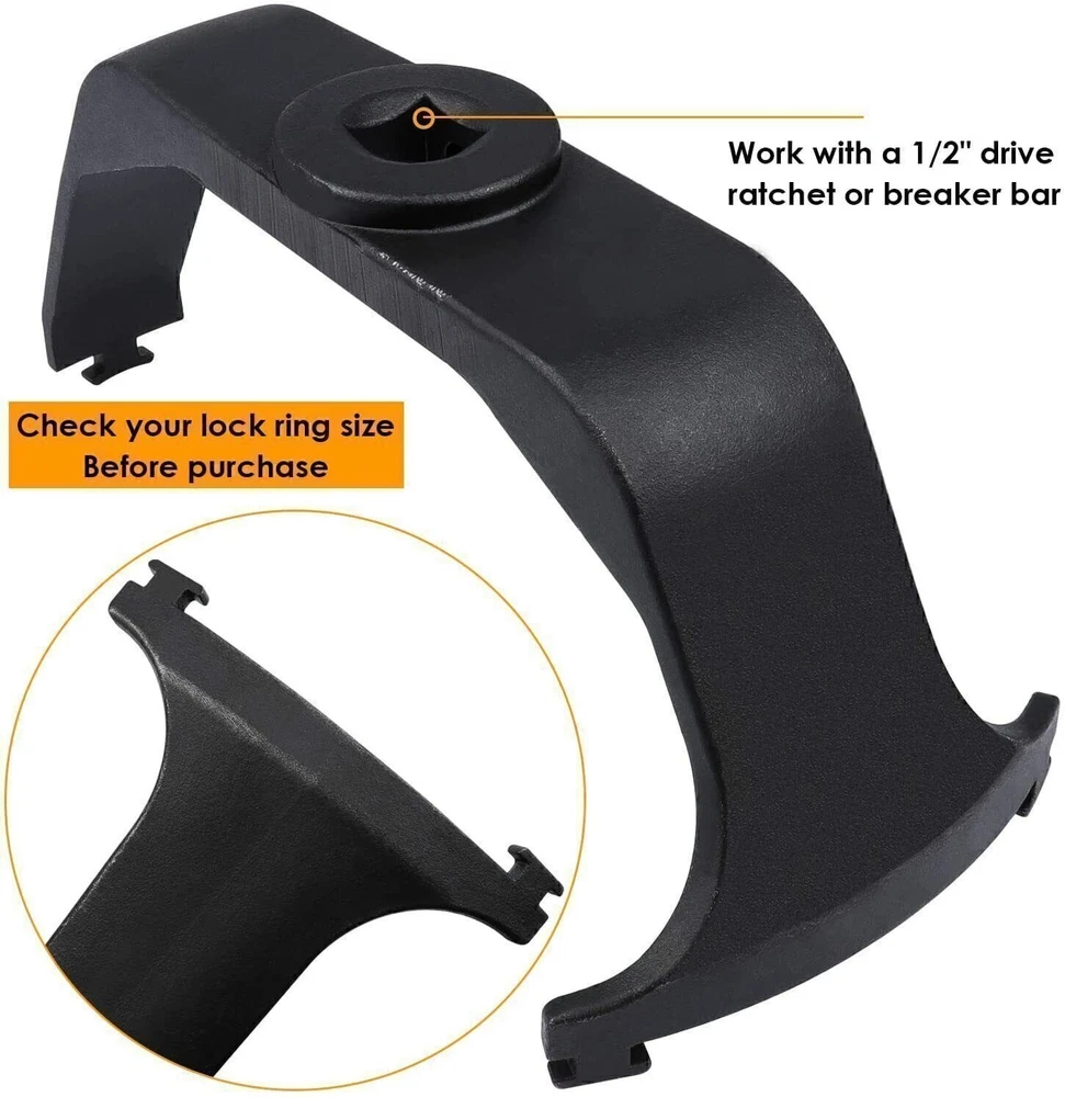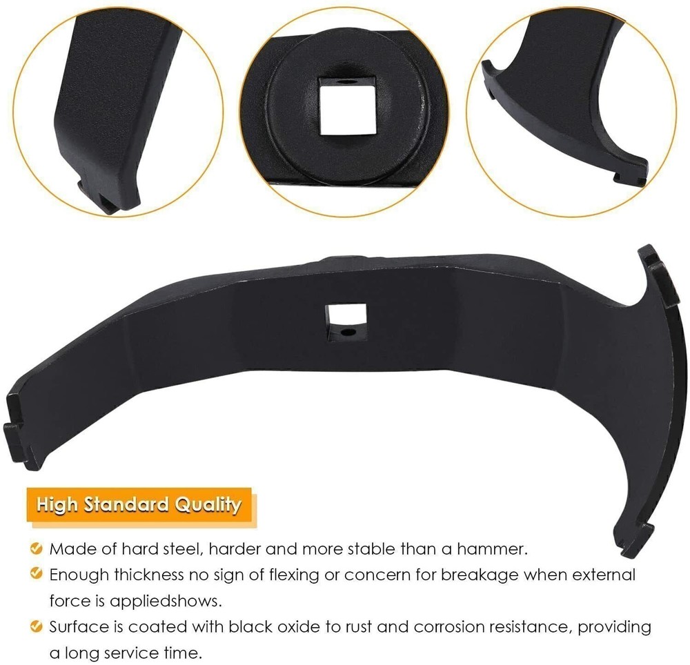 Features: FITMENT VEHICLE: Fit for Dodge Ram 1500 2500 3500 4500; for Dodge Charger Dodge Challenger SXT; for 2007-2012 Hyundai Sante Fe;for Chevy Silverado Malibu Maxx Colorado Avalanche; for SAAB 9-3 03-11; for Saab 9-5 2008; Trailblazer Camaro SS for Hyundai Elantra Tuscan Sonata FOR AUTO MODELS: for 2005 Mercury Montego; for 2005-2006 Pontiac Bonneville & G6; for 2006 chrysler 300c; for 2011 Kia Sorento; for Jeep Wrangler TJ Jeep Compass; for Ford Explorer Ford F150 Ford Ranger; for Mercury Mariner; for Nissan Pathfinder Sentra Frontier A MUST HAVE TOOL: Using a hammer and screwdriver to loosen the locking ring would be history! This tank lock ring tool will help tackle the job of replacing the fuel sender FAST and EFFECTIVE without damaging the rings. EASY TO USE: Used with a 1/2" drive ratchet or breaker bar. Easily removes and installs lock ring on the fuel tank when servicing the fuel pump or fuel sending unit. 100% SATISFACTION GUARANTEE: Superior 42CrMo steel material with black Oxide finish resisting rust and corrosion. If you're not 100% satisfied with our tool, simply return it for a full refund in 30 days. Premium Support & 12 Months Warranty. For Reference: Compatible with Dodge Ram 1500 2500 3500 4500; Compatible with Dodge Charger Dodge Challenger SXT; Compatible with Hyundai Elantra Tuscan Sonata; Compatible with Hyundai Sante Fe 2007-2012; Compatible with SAAB 9-3 03-11; Compatible with Saab 9-5 2008; Compatible with Chevy Silverado Malibu Maxx Colorado Avalanche Trailblazer Camaro SS; Compatible with Mercury Montego 2005; Compatible with Pontiac Bonneville & G6 2005-2006; Compatible with Kia Sorento 2011; Compatible with chrysler 300c 2006; Compatible with Ford Explorer Ford F150 Ford Ranger; Compatible with Mercury Mariner; Compatible with Nissan Pathfinder Sentra Frontier; Compatible with Jeep Wrangler TJ fit for Jeep Compass