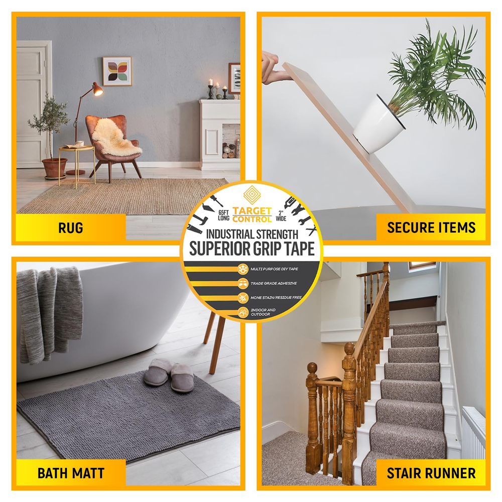 65FT x 2'' Carpet Tape Double Sided, Rug Tape Grippers for Hardwood Floors New ✅ Carpet Tape Double Sided ➔ Our Strong Rug Tape For Area Rugs On Tile The Carpet Tape For Tile Floors Are Used For Hard Surfaces Only & NOT Rug to Carpet. We Guarantee Our Double Sided Carpet Tape Heavy Duty Will Be Perfect For Your Rugs. ✅ Multi Purpose ➔ Target Control's Double Sided Tape For Rugs, Are Widely Used On Outdoor Carpet Tape, Rug Gripper Tape, Carpet Adhesive, Outdoor Rug Tape For Concrete, Tiles, Wooden Floors ETC. ✅ No Residue Left ➔ Our Unique Is Made With A Clear Solution And Does Not Leave Any Marks When You Remove It, Our Double Sided Rug Tape Are Extremely Heavy Duty & Is Designed To Non Stain, Easily Remove The Tape Without It Leaving Any Residue Or Trace Of Sticky Adhesive That Can Damage Your Floor (IMPORTANT: DO NOT USE ON CARPET THIS IS FOR HARD SURFACES ONLY). This Product, Like Any Strong Double Sided Tape, Is Not To Be Used On Top Of A Carpet - Only To Tape To Floorboards Etc. ✅ Extra Safety ➔ Target Control Extra Strong Double Sided Tape Is Just As Good As Carpet Glue Adhesive. It's Very Strong Carpet Gripper Strips To Ensure Your Carpet Wont Move We Make Sure We Extra Strong Double Sided Tape Heavy Duty, Carpet Grips Ensure Safety & Peace of Mind. ✅ Professional Use ➔ This Double Tape Is Used By Many Professionals As Carpet Binding Tape, Carpet Tape For Rugs On Top Of Flooring, Double Sided Tape For Carpets, Carpet Grip, Carpet Joining Tape, Carpet Edging Tape, Carpet Tacks For Stairs. 2.0 inches x 780.0 inches x 0.01 inches. Weight: 12.7 oz Item model number TC-102 Number of Items 1 Color Clear Product Dimensions 780 x 2 x 0.01 inches; 12.7 ounces Material Polypropylene Country of Origin China Recommended Uses For Product Indoor, Outdoor Size 22 Yards x 2"