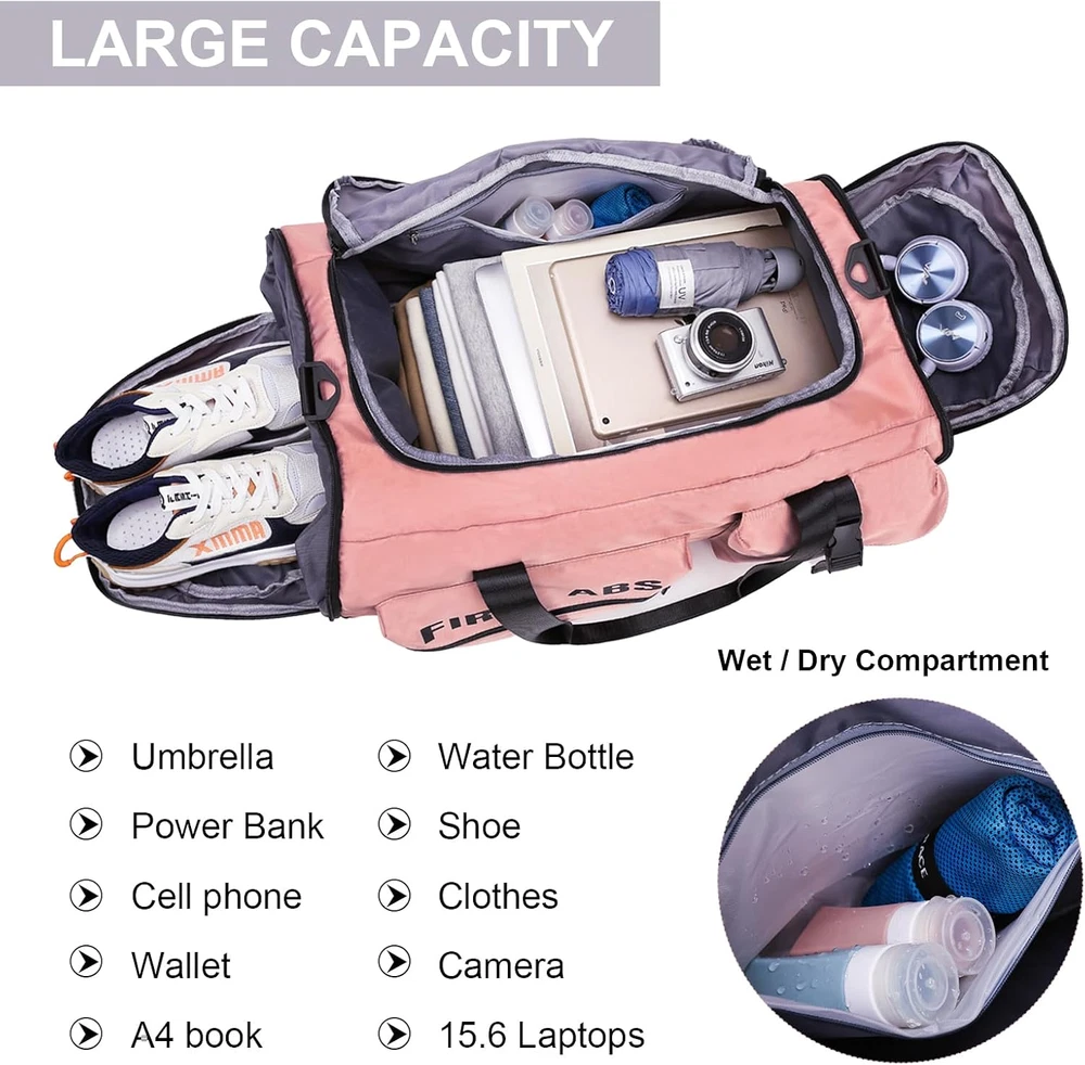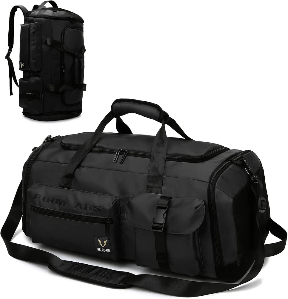 ➤ 65L Extra Large Capacity Duffle Bag: Our Eslcorri travel duffle bag for Women & Men measures 23.6*13.8*11.8in, which can hold a capacity of 65L, enough space for clothing for a 4-6 day trip. It is a perfect weekender bag with a wide opening for easy packing, and also an ideal overnight weekend boarding bag for business or personal travel. Can be folded when not in use. ➤ 3 IN 1 Multipurpose Airplane Friendly Travel Bag: This duffle bag for women and men can be carried in different ways: like a regular duffel bag, like a crossbody bag, or strapped to your back like a giant backpack(hidden straps). Easily held all your gym or travel necessities, a great choice as a large gym bag, travel duffle bag, yoga bag, weekender bag, overnight bag, swimming bag, camping bag, workout bag, or carry-on luggage. ➤ Multiple Pockets Sports Gym Bag: The duffle bag for men has 1 main bag, 1 front zip pocket, 1 utility pocket, 1 separate shoe compartment, 1 side bag, 1 wet zipper pocket, 1 back zipper pocket, 1 back luggage sleeve, and 1 hidden backpack shoulder strap. The trolley sleeve zips closed and double as an additional external pocket when not in use. The over-the-shoulder strap is padded but not super comfortable when the bag is full/heavy. ➤ Independent Shoe Compartment & Wet Pocket: The bottom compartment of the personal item travel bag is spacious and can easily fit 2 pairs of women's shoes, which doesn't interfere with the available space in the main duffle compartment. There is a wet pocket in front, which can store clothes after fitness.* [For any issues or concerns, feel free to via Messenger, so we can help you resolve them.] ➤ Upgraded Material: Our duffle bags are made with premium Fabric, it weighs 2.1 pounds and is lightweight, soft, washable, waterproof, wrinkle-free, wear-resistant & tear-resistant. The waterproof exterior keeps your clothes and items dry. It can hold clothes, a 17-inch Laptop, swimsuits, makeup, towel, water bottles, snack, toys, shoes, etc. Product Description Eslcorri 65L Travel Duffel Tote Bag for Women Men If you are looking for a versatile lightweight, collapsible and double-use carry duffle bag, get this! 3 in 1 Large Sports Gym Bag Multipurpose Weekender Foldable Resistant Duffle Bag Multipurpose Travel Duffel Bag Weekender Carry On Overnight Bag for Airplanes 3 IN 1 Multipurpose Airplane Friendly Travel Bag : This duffel bag for women and men can be carried in different ways: like a regular duffel bag, like a crossbody bag, or strapped to your back like a giant backpack(hidden straps). Easily held all your gym or travel necessities, a great choice as a large gym bag, travel duffle bag, yoga bag, weekender bag, overnight bag, swimming bag, camping bag, workout bag, or carry-on luggage. WATER-RESISTANT Travel Bag Independent Shoe Compartment & Wet Pocket Multiple Pockets: 1*Main Bag 1*Front Zip Pocket 1*Utility Pocket 1*Wet Zipper Pocket 1*Side Bag 1*Back Zipper Pocket 1*Back Luggage Sleeve 1*Separate Shoe Compartment 1*Hidden Backpack Shoulder Strap The bottom compartment of the personal item travel bag is spacious and can easily fit 2 pairs of women's shoes, which doesn't interfere with the available space in the main duffle compartment. There is a wet pocket in front, which can store clothes after fitness. Multiple Pockets Sports Gym Bag 65L Extra Large Capacity Duffel Bag for Swimming Yoga Camping Our Eslcorri travel duffle bag for Women & Men measures 23.6*13.8*11.8in, which can hold a capacity of 65L, enough space for clothing for a 4-6 day trip. It is a perfect weekender bag with a wide opening for easy packing, and also an ideal overnight weekend boarding bag for business or personal travel. Can be folded when not in use. This duffle bag for women men delivers roomy main compartment to store your clothes and items. Womens Mens Sports Gym Bag Carry On Overnight Backpack for Swimming Yoga Camping This gym bag can fit all of your workout things, shower bag, shower/gym shoes, towel, change of clothes etc.. It is a perfect overnight weekend bag has roomy space, ideal for a 4-6 day business or travel like trekking or camping. It fits a lot, clothes, toiletries, shoes, gear and other essentials. Eslcorri 65L Travel Duffel Bag and Crossbody Bag in Different Sizes Add to Cart Add to Cart Add to Cart Add to Cart Customer Reviews 4.6 out of 5 stars 259 4.6 out of 5 stars 259 4.6 out of 5 stars 259 4.5 out of 5 stars 38 4.5 out of 5 stars 38 4.5 out of 5 stars 38 4.5 out of 5 stars 38 Price — — — $19.99 $ 19 . 99 $19.99 $ 19 . 99 $19.99 $ 19 . 99 $19.99 $ 19 . 99 Size-Inch 23.6" x 13.8" x 11.8" 23.6" x 13.8" x 11.8" 23.6" x 13.8" x 11.8" 11" x 9.1" x 3.9 " 11" x 9.1" x 3.9 " 11" x 9.1" x 3.9 " 11" x 9.1" x 3.9 " Material nylon nylon nylon woven straw + PU leather canvas+ PU leather canvas+ PU leather woven straw + PU leather Designed For Swimming Yoga Camping Business Travel Hiking Travel Gym Yoga Shopping, Dating Daily use Working Commuting water proof ✓ ✓ ✓ water resistant water resistant water resistant water resistant Good Gift Choice ✓ ✓ ✓ ✓ ✓ ✓ ✓