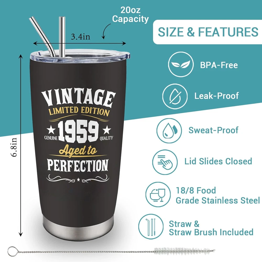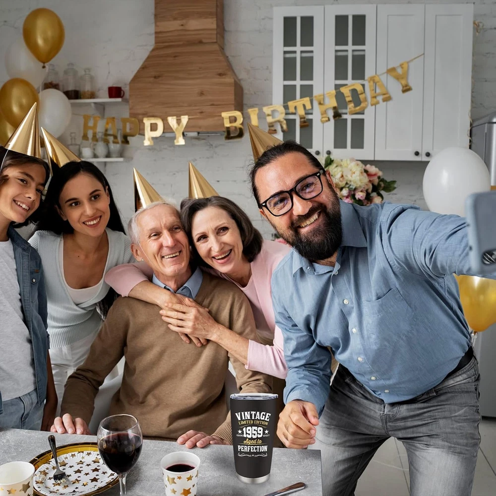 Gifts for 65th Birthday Men and Women: The 65th birthday is a day worth celebrating. This cup is very suitable for you to give to your grandpa, grandma, dad, mom, wife, or friend on this holiday. The cup uses high-quality printing technology, and the pattern and text on it will surprise him or her. Use this gift to express your love for him or her. 65th Birthday Decorations Gifts: Everyone who turns 65 deserves a satisfying gift, and this 65th-themed coffee mug is an ideal gift. Use this mug to satisfy his or her needs and create beautiful memories of this day. This gift is also suitable for decorating your life and serving as a commemoration of this day. Premium Material: Our coffee tumblers are made from premium 18/8 food-grade stainless steel, making them strong and sturdy. Its BPA-free clear lid ensures a spill-proof seal, giving you peace of mind during your use. This tumbler is an essential companion for life, guaranteeing reliability and convenience. Temperature Maintenance: With its double-wall vacuum insulation, this 20oz tumbler ensures your hot drinks stay warm for up to 6 hours and your cold drinks chilly for up to 12 hours. You can enjoy your preferred beverage at the perfect temperature, whether it's coffee, iced tea, hot water, or any other drink of choice. Convenient Coffee Cup: This mother of the bride mug fits most car cup holders, making it easy for you to carry and more stable when you drive. The design is also easy to clean and can be rinsed clean with water. The perfect birthday gift for 65th - A great birthday gift for the 65th, its leak-proof clear lid ensures no spills or messes and is perfect for use on the go. Double wall vacuum insulation keeps hot for up to 6 hours and cold for up to 12 hours. This is the best birthday idea gift for the 65th. This versatile tumbler is a fun 65th birthday gift idea that fits most car cup holders and is a must-have gift indoors and out. Show them your appreciation and wish them a great day! Versatile and practical, it is not limited to a specific environment. Whether at home enjoying your morning coffee or on the way to work, they're the perfect gift for your 65th birthday. Premium material design, the tumbler is made of 18/8 food-grade stainless steel, which is very sturdy. Suitable for indoor and outdoor use, you can enjoy your favorite drinks anytime, anywhere.