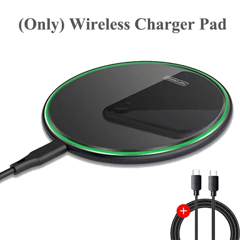 Easy to charge wirelessly and compatible with the case: The fast wireless charger allows you to charge your device 1.8 times faster than a standard wireless charger. Don't fumble with the phone case. Direct induction charging through protective covers up to 6mm/0.23 inch thick (excluding covers with magnetic or metal fittings). Thin and cool design: light, elegant and compact design with anti-skid rubber. This wireless charging pad is very thin, only 6 mm/0.23 inch. It takes up little space and is easy to place in your pocket. The high-speed wireless power charging pad is easy to carry when traveling or doing business. Whether you use it in the office or at home, this charger feels solid and looks good. Smart indicator light: When the power is turned on, if no charging device is detected within 20 seconds, the indicator light will turn on green for 20 seconds. When you place the phone or headset in the charging state, the indicator light will turn off automatically. The faint blue light flickers slowly until it is fully charged. Weak light will not affect your sleep. Specifications: Color: black/white/red/gold Output: 5W/7.5 W/10W/15W/20W/ (the maximum charging speed of 20W is faster than others) Charging efficiency:>75% Charging frequency: 110-205 kHz The package includes: 1x Wireless Fast Charger Pad 1 * 1M C-type USB cable (not included if not selected)