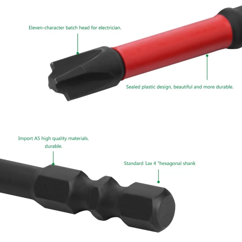Features: Brand new and high quality Sandblasting treatments, more anti-rust and tighter screw engagement. With magnetism, you can work more easily. Color differentiation, easy to work. Imported carbon steel material, high hardness, wear resistance and convenient use. Greatly improve the accuracy, save time and convenient for operation. Specifications: Material:Carbon steel Specification: FPH2(5.8mm) Length: 65mm 110mm Package Includes: 6Pcs Screwdriver Bits note: 1.Please allow 1-2cm errors due to manual measurement, make sure that you do not mind before you order. 2.Due to the difference between different monitors, the picture may not reflect the actual color of the item.