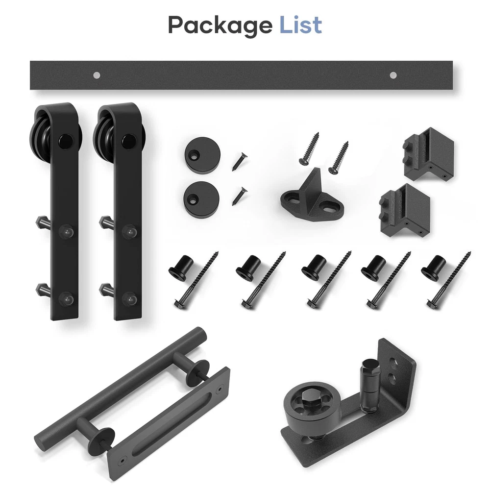 Heavy Duty Barn Door Hardware Kit: Solid steel,fine black powder coated surface,anti-corrosion ensures years of beauty and longevity.Slide Like Butter ,Ball bearing roller slide smoothly and quietly,Tested Beyond 100,000 Rolls.All items have been multiple inspected before on market Widely Apply: Our barn door kit suitable for both modern and rustic style,you can apply for aisle,garage,kitchen,bedroom and so on Reminds: 6.6ft Barn Door Hardware Kit: Fit up to 40" Wide Door;Fit Door Thickness 1-3/8" ~ 1-3/4"(35~45mm);Door Weight Capacity 220lbs. Package Includes:(2)3.3ft Rail,(5)Spacer,(2)Rollers,(2)Door Stops,(1)Floor Guide,(1)12inch Handle Set.NOT INCLUDE DOOR Barn Door Hardware Kit: Steel, fine black powder coated surface ensures years of beauty and longevity. Slide Like Butter ,Ball bearing roller slide smoothly and quietly. Tested Beyond 100,000 Rolls. All items have been multiple inspected before on market Widely Apply: Our barn door kit suitable for both modern and rustic style,you can apply for aisle,garage,kitchen,bedroom and so on Reminds: 6.6ft Barn Door Hardware Kit: Fit up to 40" Wide Door;Fit Door Thickness 1-3/8" ~ 1-3/4"(35~45mm);Door Weight Capacity 220lbs. Package Includes:(2)3.3ft Rail,(5)Spacer,(2)Rollers,(2)Door Stops,(1)Floor Guide,(1)12inch Handle Set.NOT INCLUDE DOOR Easy Install: We provide step-by-step graphic & text installation parsing manual,you can also get soft online copy and professional installation guide from our online service 24 Hours Stand By: specialize in sliding door and hardware many years,if there anything missed or broken,pls let us know,we are whole day online to solve your problem Our package include a instruction, if it's missing, pls let us know,we are whole day online to solve your problem