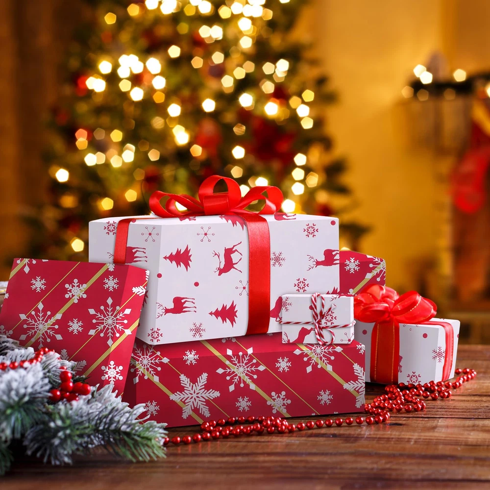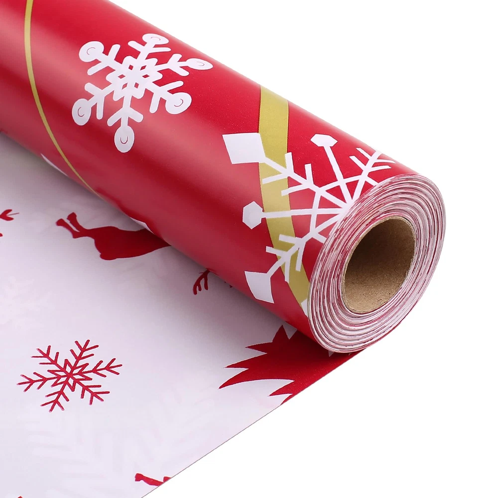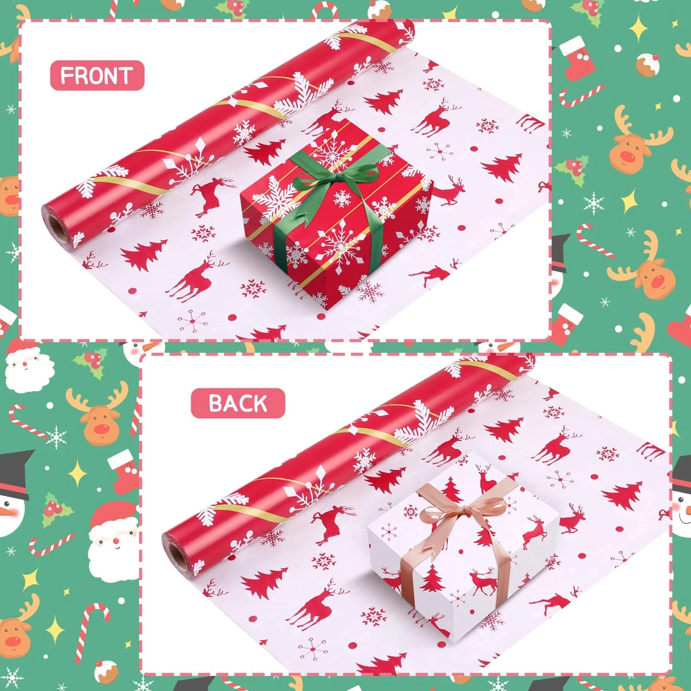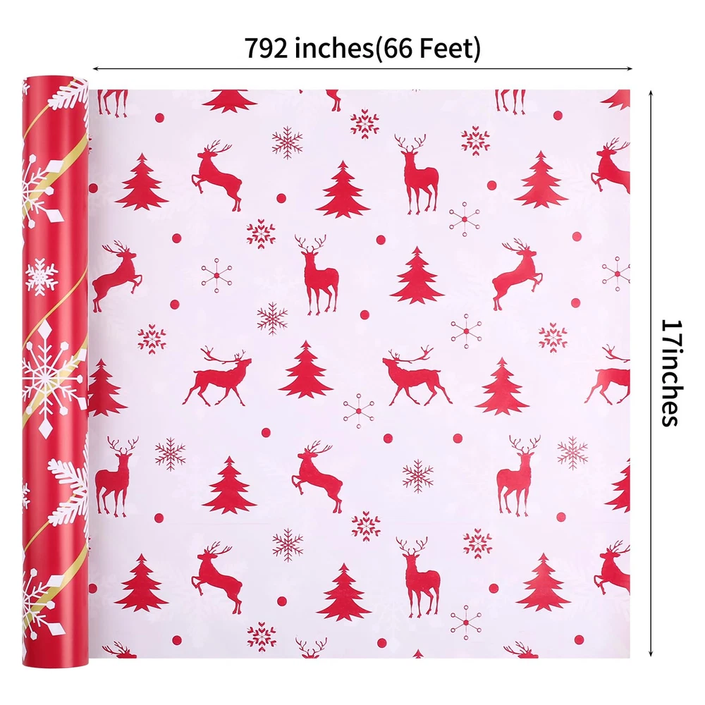 Embrace the magic of Christmas with our stunning gift wrapping paper. Adorned with beautiful red and white hues, and featuring double-sided printing of enchanting snowflakes, majestic Christmas trees, and charming reindeer. Made from high-quality coated paper, it offers durability and a luxurious feel. The extra-long 17 x 792 inch size ensures versatility for wrapping gifts of all shapes and sizes. Whether it's a small trinket or a large present, this wrapping paper will add a touch of festive charm. Not only does it look amazing, but it's also environmentally friendly and recyclable, making it a great choice for those who care about the planet. Make your Christmas gifts stand out this year with our delightful Christmas-themed wrapping paper. Rich Christmas Atmosphere:This Christmas-style gift wrapping paper features a classic red and white tone. Both sides are printed with exquisite patterns full of Christmas elements such as snowflakes, Christmas trees, and reindeer. Instantly bring you into the joyous Christmas season and add a strong festive atmosphere to your gift. High-quality coated paper material:Selected high-quality coated paper, which is thick and textured and not easily damaged, can better protect your gift. At the same time, the surface of coated paper is smooth, the printing effect is clear and delicate, and the colors are vivid and lasting, making your gift packaging more beautiful and elegant. Double-sided exquisite printing:The unique double-sided printing design is extremely exquisite from any angle. The patterns of snowflakes, Christmas trees, and reindeer on each side are lifelike, bringing an all-round visual enjoyment to your gift and making the recipient feel your care and sincerity. Extra-long size with wide applicability:The extra-long size of 17 x 792 inches can meet your wrapping needs for gifts of various sizes. Whether it's a small jewelry box or a large toy, it can be easily wrapped, providing perfect decoration for your gift. Environmentally friendly and recyclable:Not only focusing on beauty and quality, this gift wrapping paper is also very environmentally friendly. Coated paper material can be recycled to reduce environmental pollution. Let you contribute to the sustainable development of the earth while enjoying the joy of Christmas.
