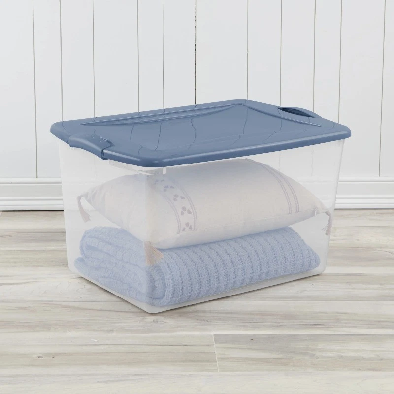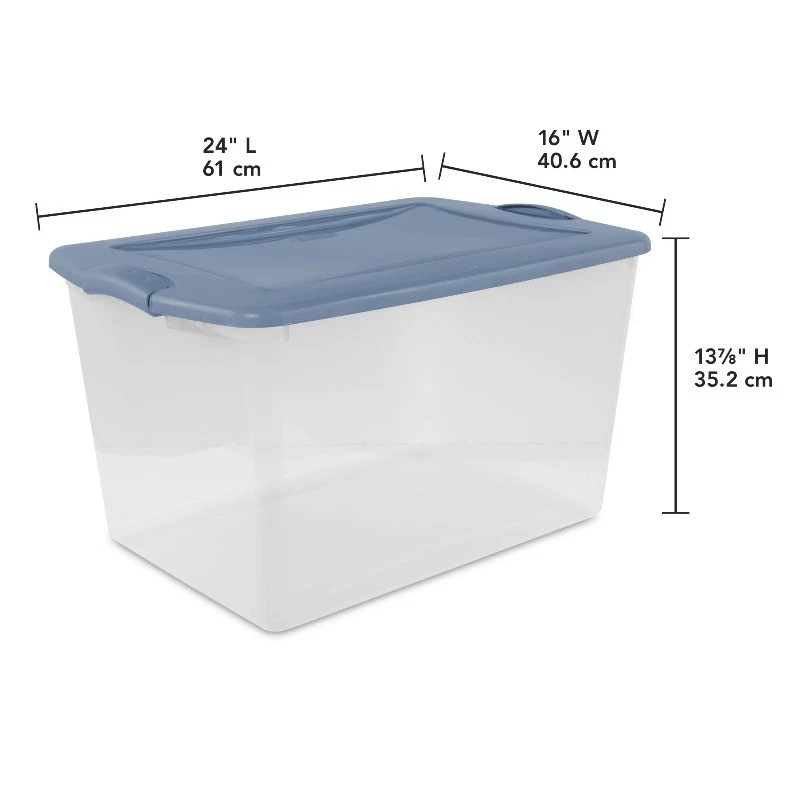 66 Qt Clear Plastic Storage Bin, Large, Latch Lid, Light Blue, 6 Count