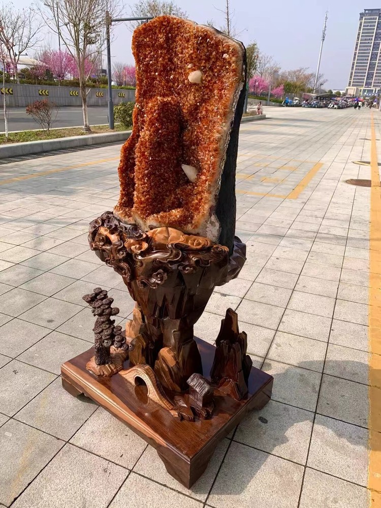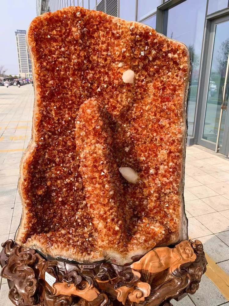 660LB Rare Natural Citrine Quartz Geode Crystal Cluster Specimen for Collectors