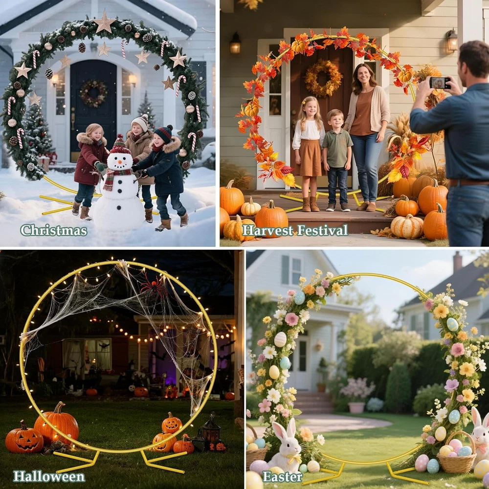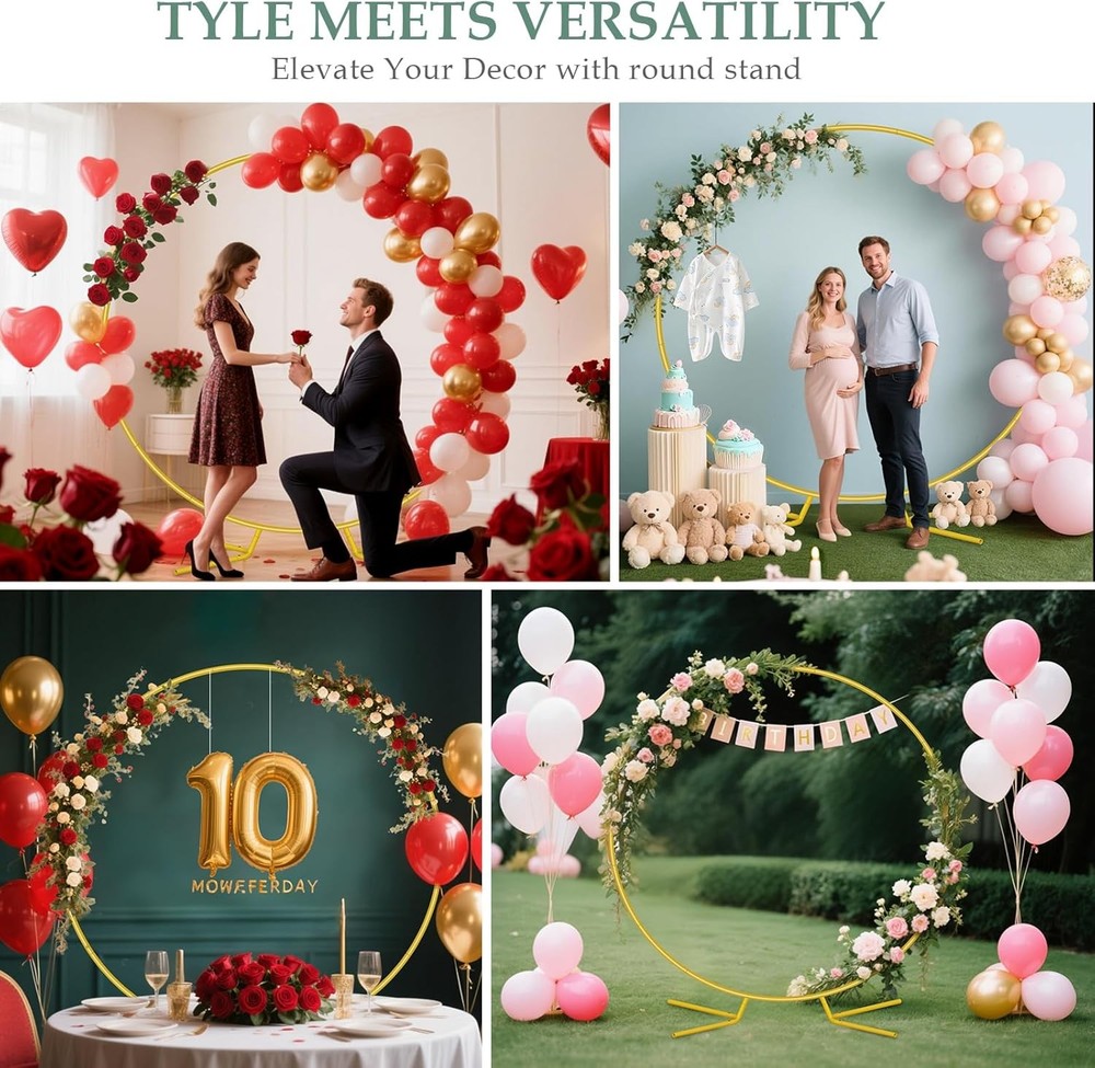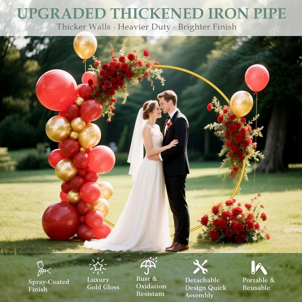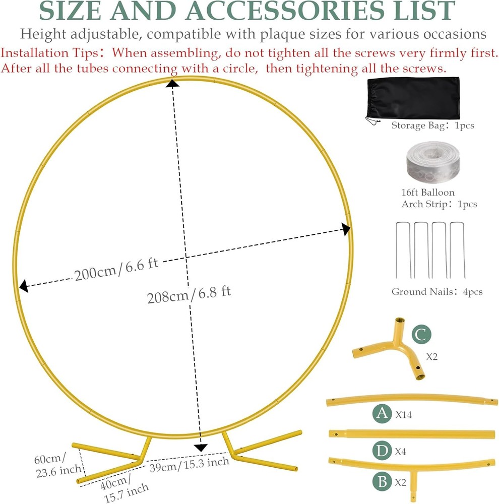 Free eBay listing template designed by dewiso.com 6.6FT Balloon Arch Stand Kit, Metal Round Backdrop Stand for Parties, Gold Circle Wedding Arches Frame with Base for Ceremony Birthday Party Baby Shower Gender Reveal Decoration FREE AND FAST SHIPPING! About this item Patent Applying HEAVY-DUTY METAL TUBES & PATENTED STABLE BASE: Featuring thicker 19mm diameter iron tubes (vs. typical 15mm) with 0.6mm walls (vs. typical 0.4mm) and fade-resistant paint for superior bending/chip resistance, our round balloon arch stand is anchored by a patented base with a centralized triangular load point ensuring rock-solid stability that prevents wobbling, even on uneven ground. ALL-INCLUSIVE BALLOON ARCH KIT STAND: 1 pcs 6.6ft circle arch stand, 1 pcs 5m balloon arch strips,4 reinforced ground spikes, and a black storage bag. 6.6 FT SIZE ARCH STAND KIT WITH BASE FOR ALL EVENTS: From intimate baby showers and milestone weddings to birthday parties, graduation ceremonies, anniversaries, festive Christmas gatherings or even spooky Halloween backdrops. This multi-use party metal arch backdrop stand boosts your investment with endless versatility, serving as a stunning centerpiece for any party or garden Floral arch. REPURPOSE AS A GARDEN TRELLIS: Personalize your party arch backdrop stand with add-ons like balloons, silk flowers, ribbons, LED lights, or fabric covers to create dazzling party decor. Plus, double it as a decorative plant climbing frame in your garden, making this gold circle wedding arch stand a year-round asset. EFFORTLESS SETUP & PORTABLE STORAGE: No tools needed! Simply connect tubes with screws in under 5 minutes. Includes a black carry bag for compact storage and reuse at multiple parties year-round. Product We offer a 30-Day Return Policy on items which you are not completely satisfied with. You have the option for a full-refund or an exchange of the item. No returns are available on items shipped outside of the US . Shipping We offer Free Shipping to the US and ship within 2 business days of payment, usually sooner. We use UPS express shipping. That's why your products are usually delivered within 3 days . Contact We try our very best to make sure every customer is completely satisfied. If there's a problem , message us! We're happy to help. 24/7 live chat available.