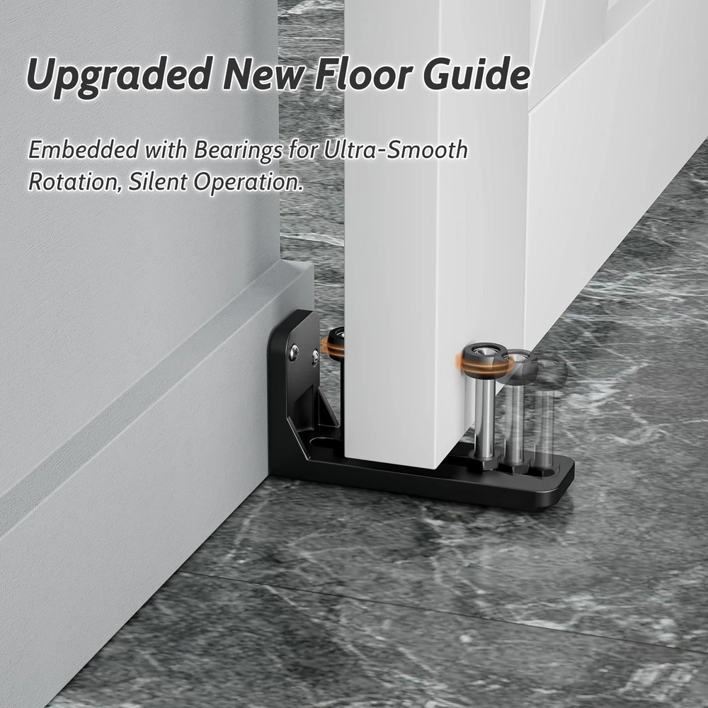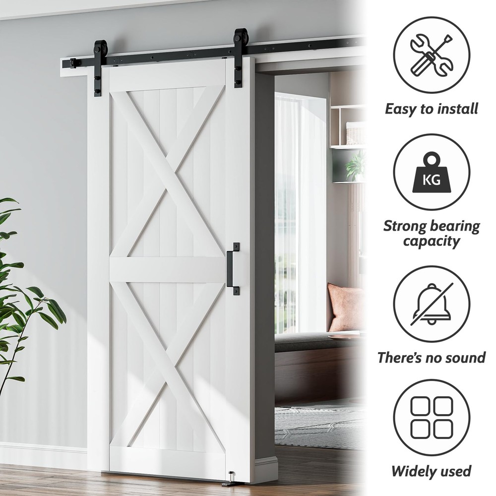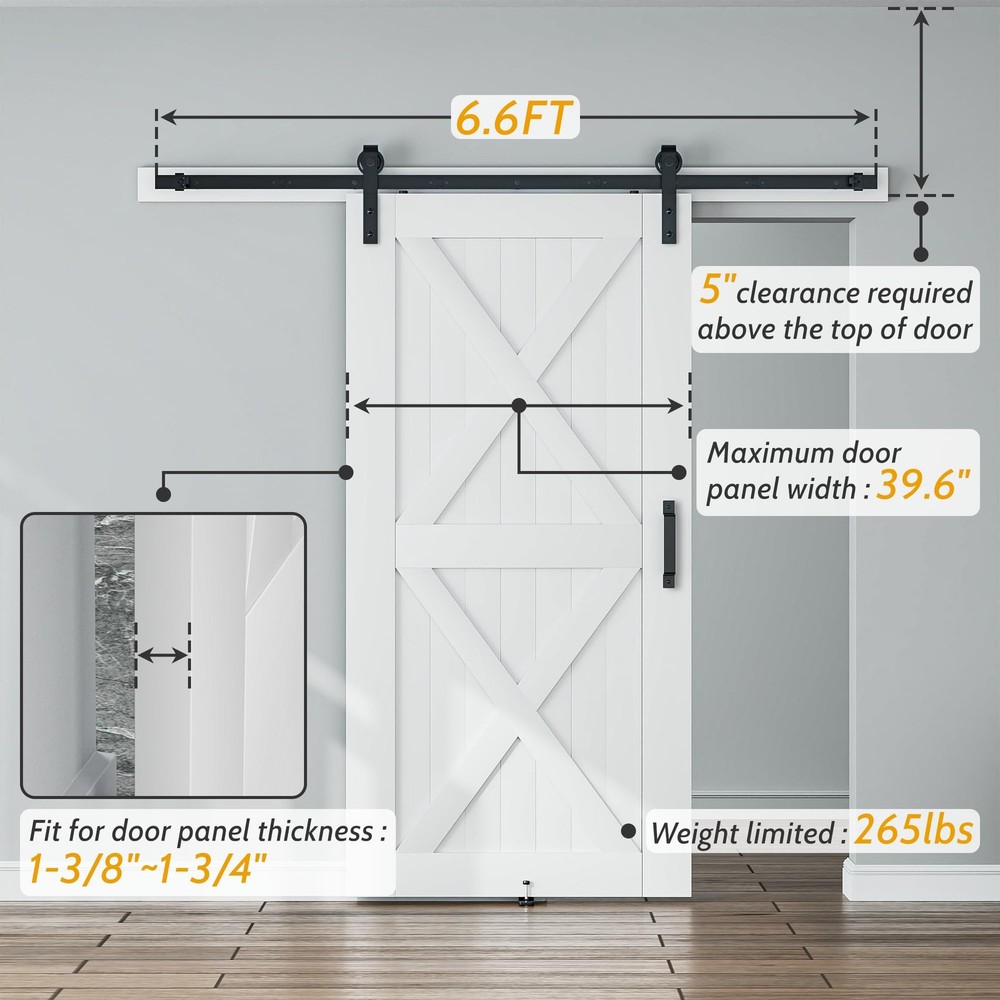 barn door hardware kit set including handle pull,hook,wall mounted floor guide. [INNOVATION DESIGN-LIGHT VERSION] By using the light version carbon steel for barn door hardware system(lighter but hold maximum 265lbs, More stronger and stable), The barn door track will be easy to lift up during installation. Low clearance barn door hardware, Less space required, The barn door roller is shorter, Which make the space required from top of barn door to ceiling will be only 5". [PREMIUM RAW MATERIAL] Barn door hardware kit are made of premium quality carbon steel in thickness of 5/32", Which make the barn door kit system more sturdy and stable durability. The wheel part are made of POM(better than steel, few scratch to barn door track), 2 pcs Bearings in side wheel, All these ensure the sliding will be smoothly and quietly. [REASONS FOR CHOOSING US] Get super quality barn door hardware kit from us ,All the barn door hardware kit have been inspected in factory before delivery,Passed 100,000 times opening and closing test.Get barn door hardware kit with a manufacturer price,why not ? In case you got any confustions on installation or missing parts after got the package ,kindly feel free to via directly ,we will get back to you in 24 hours ,thank you . [EASY TO INSTALL] Barn door track pre-drilled hole space is 16", Step by Step Instruction included. Our Instruction is listing every step for installation from A to Z. You can finish the installation of barn door hardware kit in half an hour if you get 2 workers. In case you get any problem or missing parts during installation, please free feel to via . [SPACE SAVING] Sliding barn door hardware kits provide an excellent solution for space utilization. Unlike traditional sliding doors, barn door systems don't impose limitations on the space behind the door, enabling you to conveniently organize items there. The key benefit of opting for a barn door system is the significant enhancement in spatial efficiency, which ultimately contributes to a neater and more organized space.ONLY BARN DOOR HARDWARE KIT INCLUDING ,BARN DOORS ARE NOT INCLUDED.