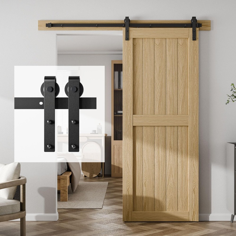 $ 55.116.6FT Heavy Duty Single Sliding Barn Door Hardware Kit with 1/4" Thick Matte Black Track