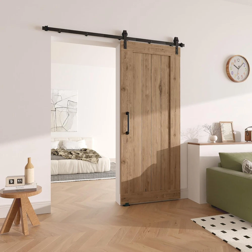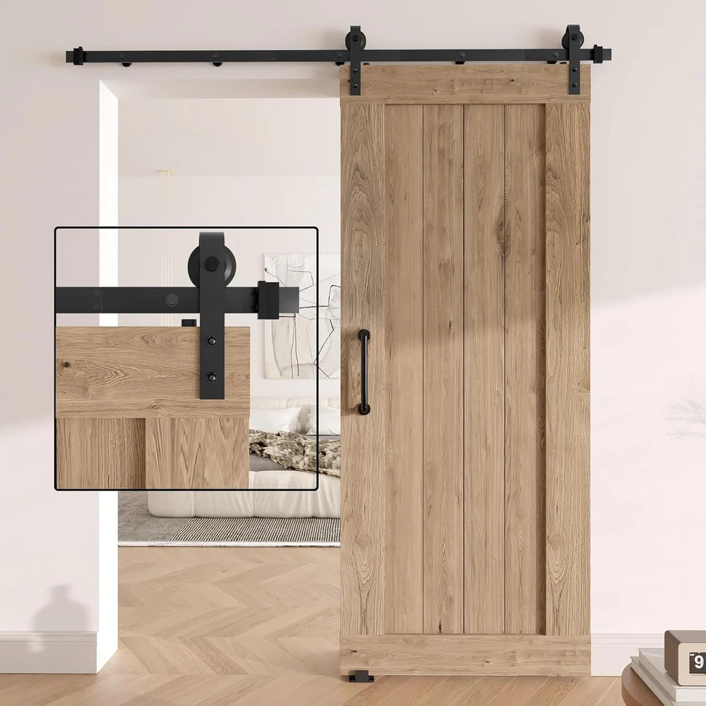 6.6FT Sliding Barn Door Hardware Kit with Upgraded Screw Fixation Modular Track and Heavy Duty Rollers