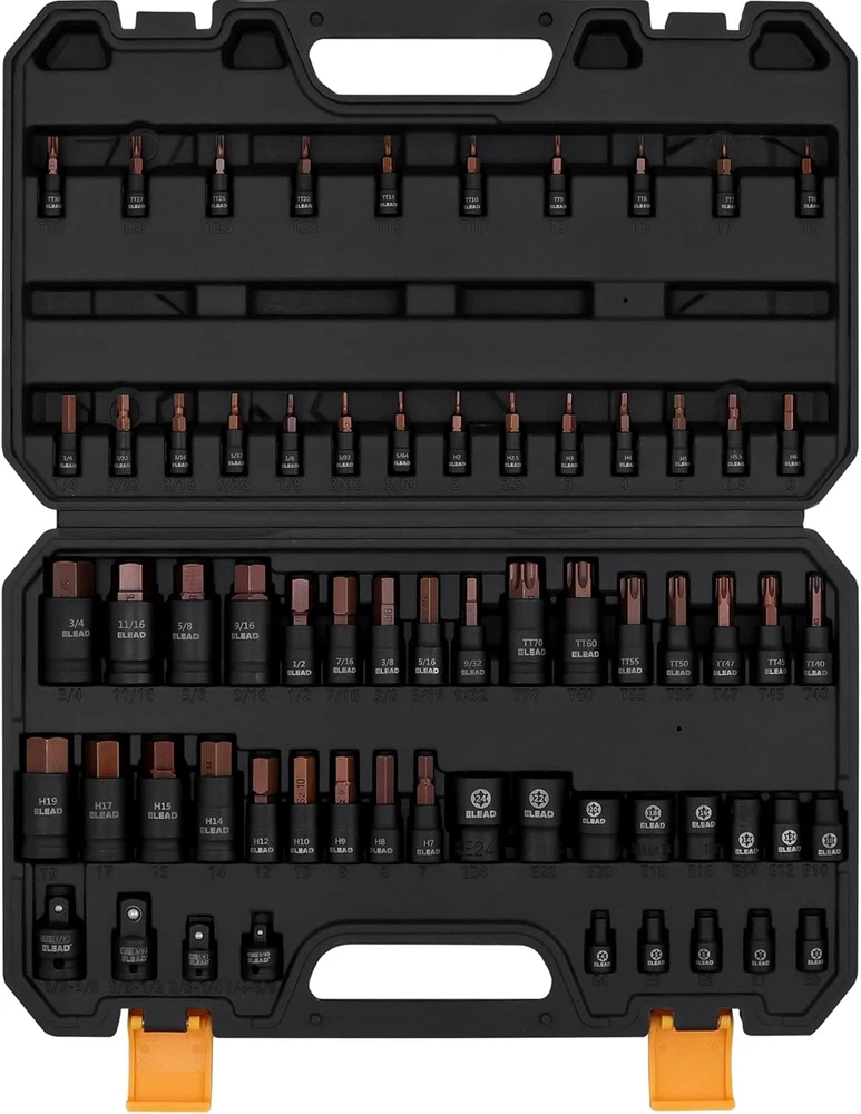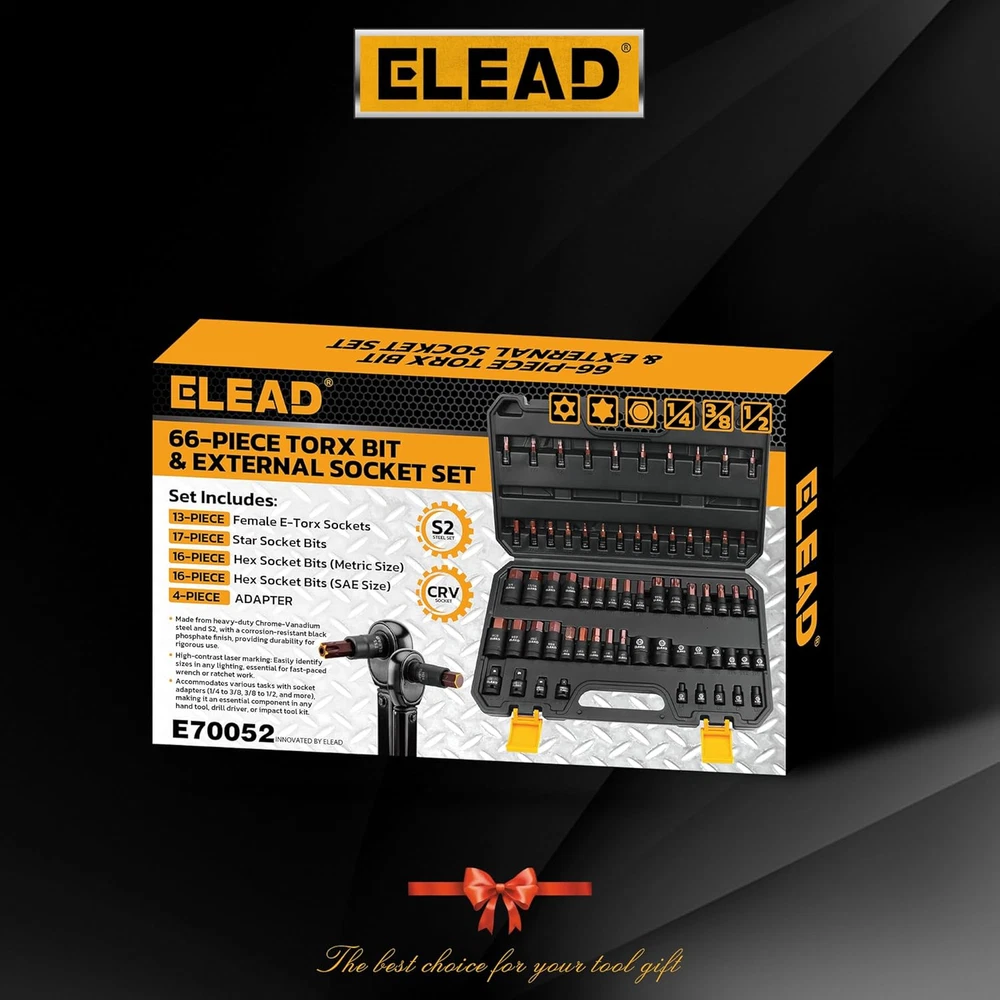 Store New Arrivals Add to Favorite View Feedback Contact 66-Piece Torx Bit & Hex Bit Socket Set: Premium CR-V & S2 Alloy Steel, Star Tamper Proof T8-T70 & E-Torx E4-E24, High Torque Laser Marked for Automotive Mechanic Description Item model number E70052 Item Package Quantity 1 Batteries Required? No Finish Polished Pattern 66-Piece Torx Bit & Hex Bit Socket Set Brand ELEAD Material S2 Steel Compatible Fastener Range Torx (T6-T70), E-Torx (E4-E24), and hex (metric and SAE sizes) fasteners Drive System Torx Item Weight 8.23 pounds Manufacturer ELEAD Pattern Name 66-Piece Torx Bit & Hex Bit Socket Set Batteries Included? No Number of Pieces 66 Finish Type Polished Package Dimensions 15.35 x 9.41 x 2.32 inches Size Full Size PREMIUM QUALITY - Crafted from heat-treated CR-V and S2 alloy steel, our 66-piece Torx bit socket set ensures durability and corrosion resistance, ideal for any automotive mechanic or DIY enthusiast. COMPLETE KIT - This comprehensive set includes T6-T70 star bits, E4-E24 E-Torx, and both metric and SAE hex socket bits, providing the perfect tools for any task, whether using a driver, wrench, or ratchet. EASY IDENTIFICATION - High-contrast laser markings on each socket make size identification quick and accurate, streamlining your workflow and eliminating guesswork in finding the right tool. ORGANIZED STORAGE - The compact and sturdy case keeps all 66 pieces well-organized and easy to carry, ensuring that your tools are readily accessible wherever you need them. VERSATILE COMPATIBILITY - Perfect for use with manual torque tools, our Torx/Star bit set includes all necessary sizes for bicycles, cars, appliances, lawn equipment, machinery, and any other tasks. Product Description Our 66-piece Torx bit socket set, made from heat-treated CR-V and S2 alloy steel, offers superior durability and corrosion resistance. ABOUT US We offer the best prices around on high quality products. Our E-store includes media such as books, movies, music and games while offering electronics, toys, sporting apparel, clothing, tools, general home, garden items and more. SHIPPING We are always working hard to ensure your package arrives as soon as possible. Please understand that some factors like weather, high postal traffic, and the performance of shipping companies are outside of our control. We offer free shipping to the lower 48 states and ship within 2 business days of payment, usually sooner. We do not accept P.O. Boxes. Please provide a physical address. RETURNS We offer a 30-Day Return Policy on items which you are not completely satisfied with. You have the option for a full-refund or an exchange of the item. No returns are available on items shipped outside of the USA. PAYMENT We accept PayPal. CONTACT US This page content is yet to come Please ad us to your favorite seller and visit again later Thank You CUSTOMER SATISFACTION We try our very best to make sure every customer is completely satisfied. If there's a problem, message us! We're happy to help.