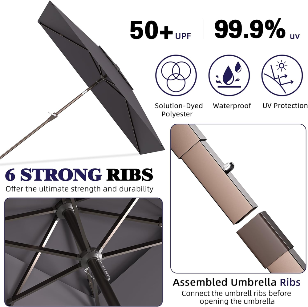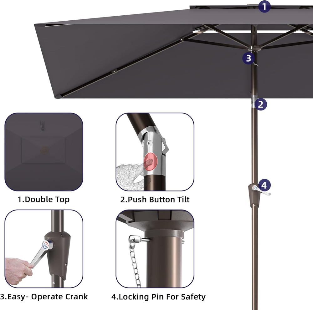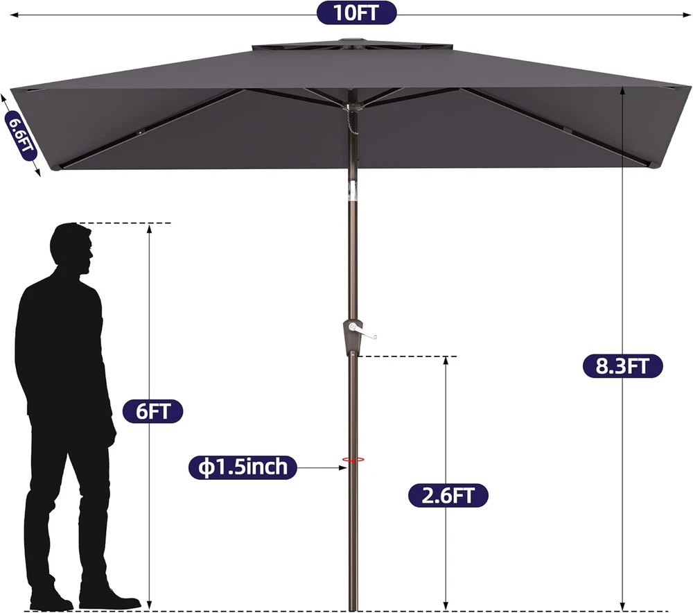 Store New Arrivals Add to Favorite View Feedback Contact 6.6X10Ft Rectangular Patio Umbrella, 2 Tiers Outdoor Table Umbrellas with Push Button Tilt and Crank for Patio, Pool, Backyard, Deck, Picnic, Yard (Grey) Description Color Grey Shape Rectangular Package Dimensions 58.8 x 5.8 x 5.8 inches Item Weight 14.87 pounds Shaft Material Aluminum Handle Material Ethylene Vinyl Acetate Frame Material Aluminum Recommended Uses For Product Patio Target Audience Adult Specific Uses For Product Sun Premium Material:The 2 Tiers outdoor umbrella patio is made of 100% polyester fabric with fade resistant, can provide 98% UV protection Easy Use:Pakarde rectangle patio umbrella operates with crank lifting system for your easy and quick use. Push-button tilt 45°design, let your outdoor umbrella be adjustable to keep the sun at your back all the time Updated Design:Rectangular patio umbrella are all aluminum umbrella bones and 6 heavy duty umbrella ribs.Assembled umbrella ribs design saves storage space. Connect the umbrella ribs before opening the umbrella Wide Shade:Patio umbrellas is 6.6' X 10',which can accommodate a table and chairs for 4-6 people and offers plenty of shade for optimal coverage, allowing you to feel cool in the hot summer Umbrella Base is Not Included: Umbrella base is not included. Outdoor patio umbrella perfect for your patio, garden, pool. Please contact us with any problem at anytime Product Description ABOUT US We offer the best prices around on high quality products. Our E-store includes media such as books, movies, music and games while offering electronics, toys, sporting apparel, clothing, tools, general home, garden items and more. SHIPPING We are always working hard to ensure your package arrives as soon as possible. Please understand that some factors like weather, high postal traffic, and the performance of shipping companies are outside of our control. We offer free shipping to the lower 48 states and ship within 2 business days of payment, usually sooner. We do not accept P.O. Boxes. Please provide a physical address. For shipping outside of the continental USA, we only use eBay's Global Shipping Program.The item is shipped to KY and then sent to the rest of the world. International customers are responsible for all duties and taxes. Continue to check out in order to calculate costs for shipping the item to your country. Messages regarding eBay's Global Shipping Program MUST be directed at eBay EXCLUSIVELY. RETURNS We offer a 30-Day Return Policy on items which you are not completely satisfied with. You have the option for a full-refund or an exchange of the item. No returns are available on items shipped outside of the USA. PAYMENT We accept PayPal. CONTACT US This page content is yet to come Please ad us to your favorite seller and visit again later Thank You CUSTOMER SATISFACTION We try our very best to make sure every customer is completely satisfied. If there's a problem, message us! We're happy to help. WE ACCEPT Copyright © 2021 AutoDS. | All Rights Reserved