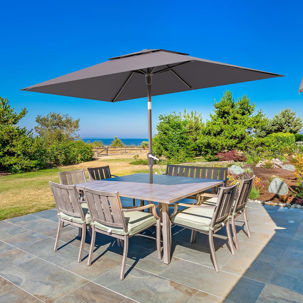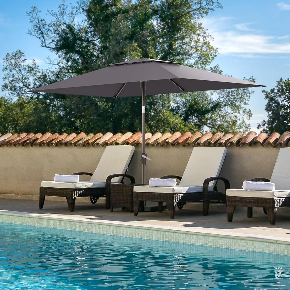 6.6x10Ft 2-Tier Rectangular Patio Umbrella with Push Button Outdoor Table Shade