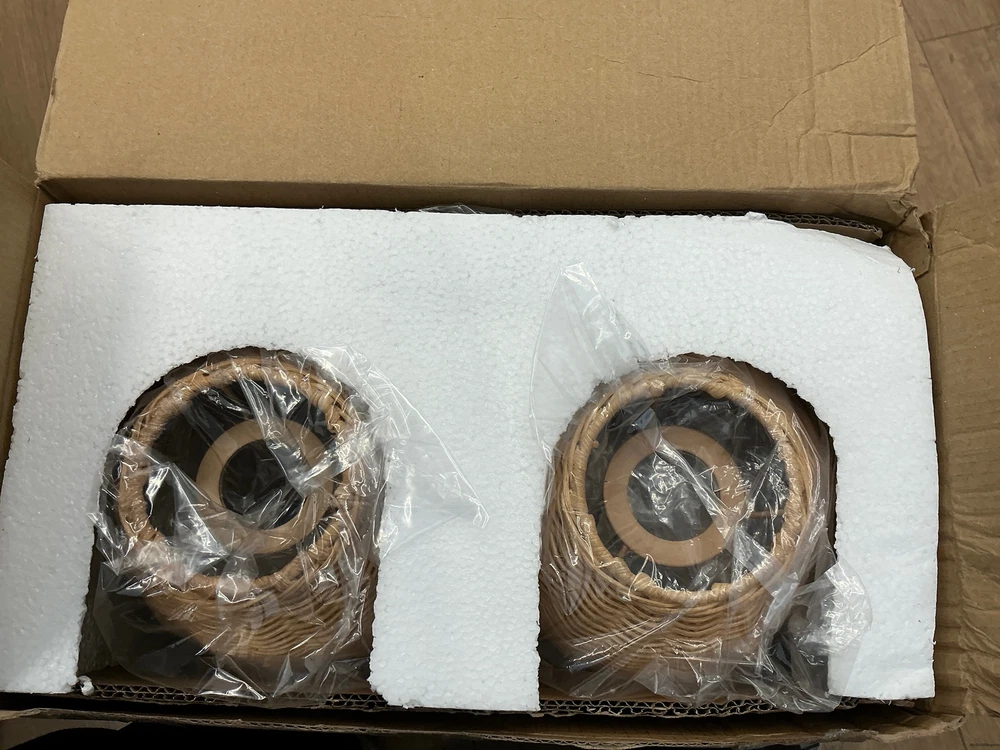 68'' ht Standing Floor Lamp, Tree Trunk Wood Finish Column, 6"x 6" Wicker Drum shade. Retail Packaging distressed. Item is new.Free shipping applies within the United States only. Orders to Alaska, Hawaii, Puerto Rico, Guam, Virgin Islands, and PO/FPO/APO boxes may require an additional fee. Listing and template services provided by inkFrog