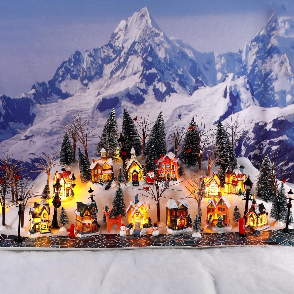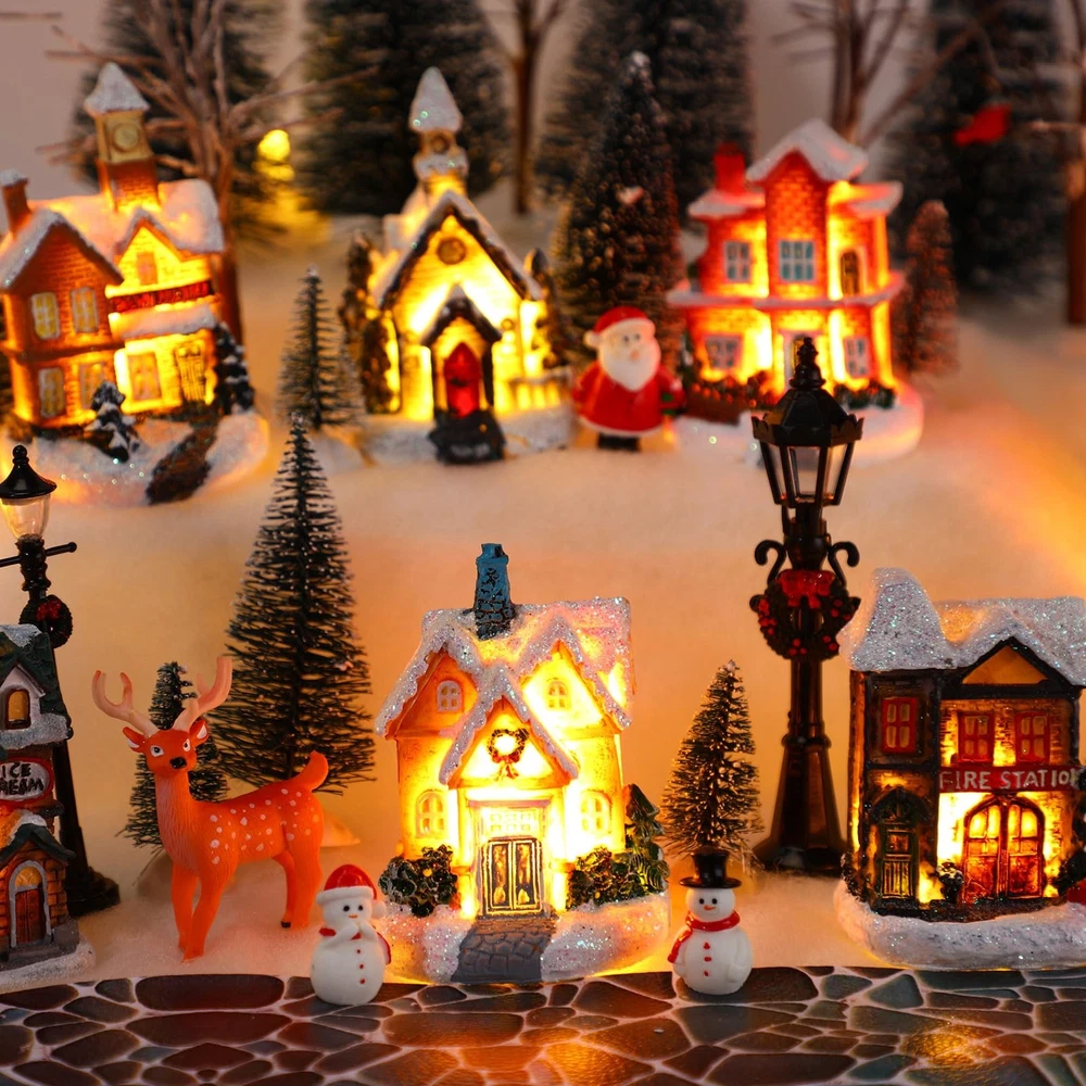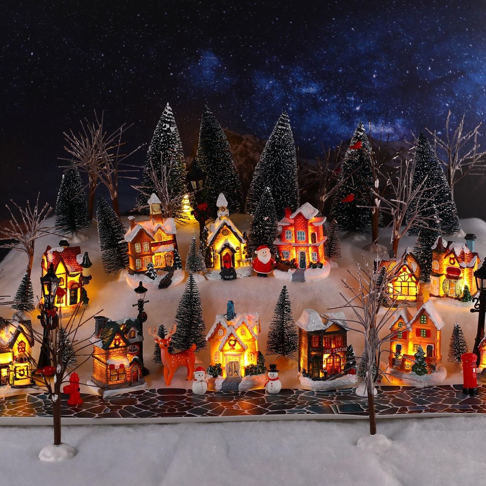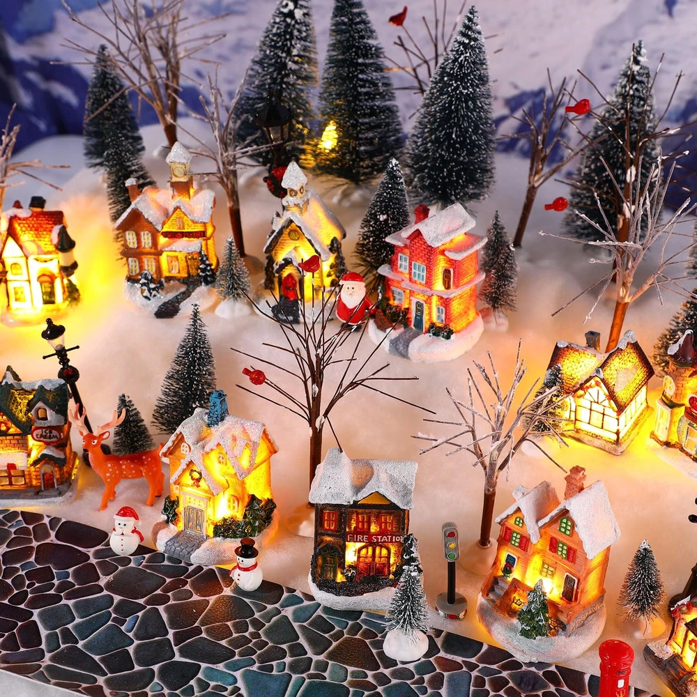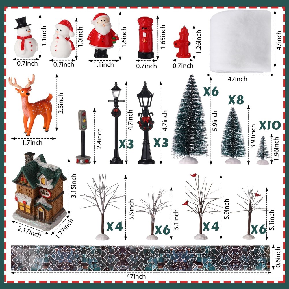 Features: Easy to display: This small Christmas winter village set adopts proper size design, lightweight and compact, easy to carry and display and does not take up much space. Wide application: The Christmas winter village set can not only be applied as interior decoration to decorate the living room, bedroom, office, game room, etc., but also can be applied as a small toy for children. For example, bring happiness to your children. Specifications: Material: plastic, iron, resin Size: as picture shows Color: as picture shows Package includes: 68 x Christmas winter village set Some houses contain button batteries Notes: Manual measurement, please allow slight errors on size. The color may exist a slight difference due to different screen displays. Large houses and street lights do not contain batteries and need to be prepared by yourself. Christmas Winter House Village Sets: you will receive 24 green Christmas trees, 18 bare branch trees, 6 streetlamps with a battery box, 7 mini ornaments, including snowman, reindeer, resin Santa Claus and other styles, 12 mini light house, and 1 carpet of snow, a roll of road, colorful and sufficient for you to make a winter Christmas house decoration DIY Christmas winter House Village Set: it is incredible to make a Christmas style village with these Christmas winter village accessories, including pine trees, village bare branch trees, cobblestone street mats, streetlamps, creating a happy winter Christmas atmosphere LED Lights House: the 12 pieces Christmas houses come with battery powered LED lights, which are very easy to operate; Just press the power button to light up your house, proper to decorate Christmas houses villages Miniature Christmas Tabletop Ornaments: these Christmas craft village miniature trees are suitable for DIY winter snow ornaments, craft displays, holiday villages, home party decorations, mini gardens, scene layouts, windows, tables and so on Nice Presents: these village sets are good choices for decorating your own home, and our miniature Christmas tree decorations are thoughtful and practical gifts for your family members, friends, relatives, neighbors, colleagues, classmates and more, which can express your holiday blessings, and bring them joy and cheer