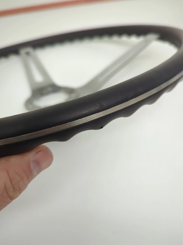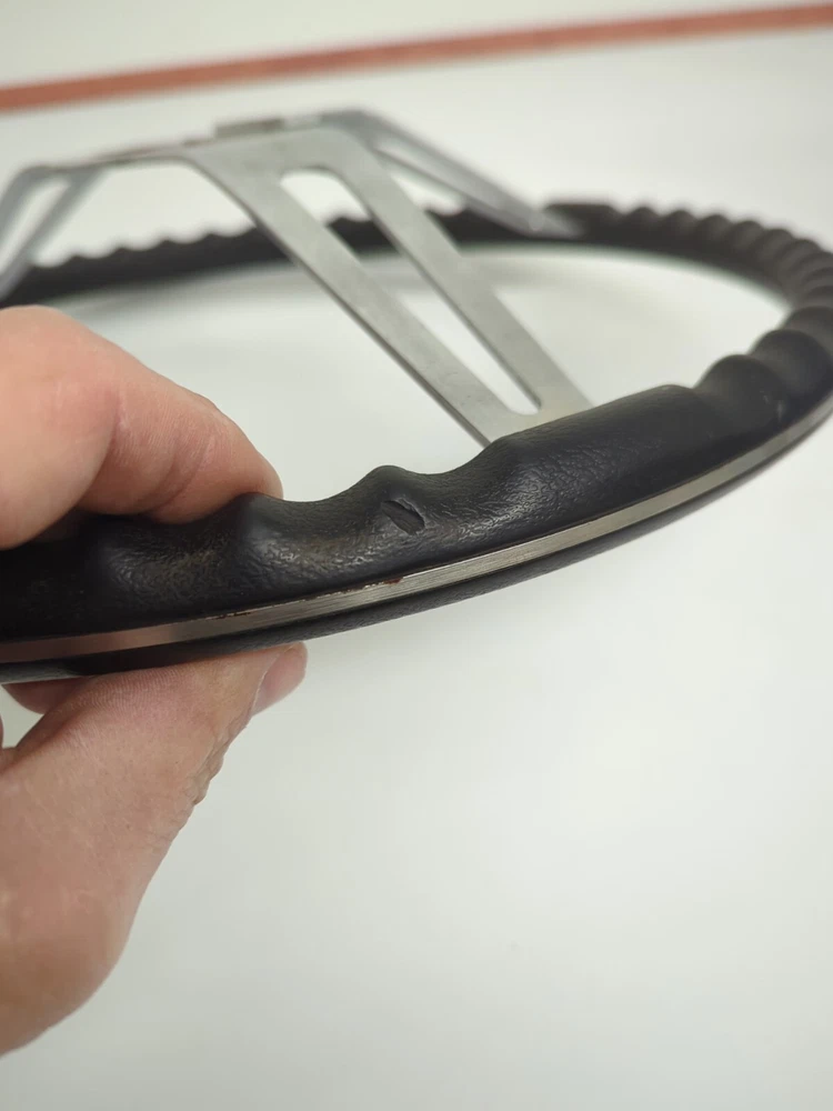 Original used GM comfort grip steering wheel. Black in color, 15" diameter, 2-3/4" deep. In great condition. Not sticky, has a few minor nicks on the rim (see pics) nothing serious. Wheel is not bent at all. No delamination where the cushion meets the spokes.No significant scratches on the spokes. Not perfect but a very nice wheel