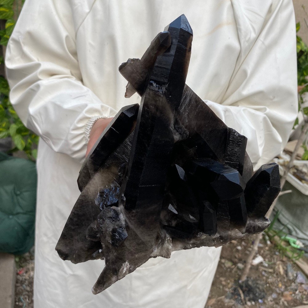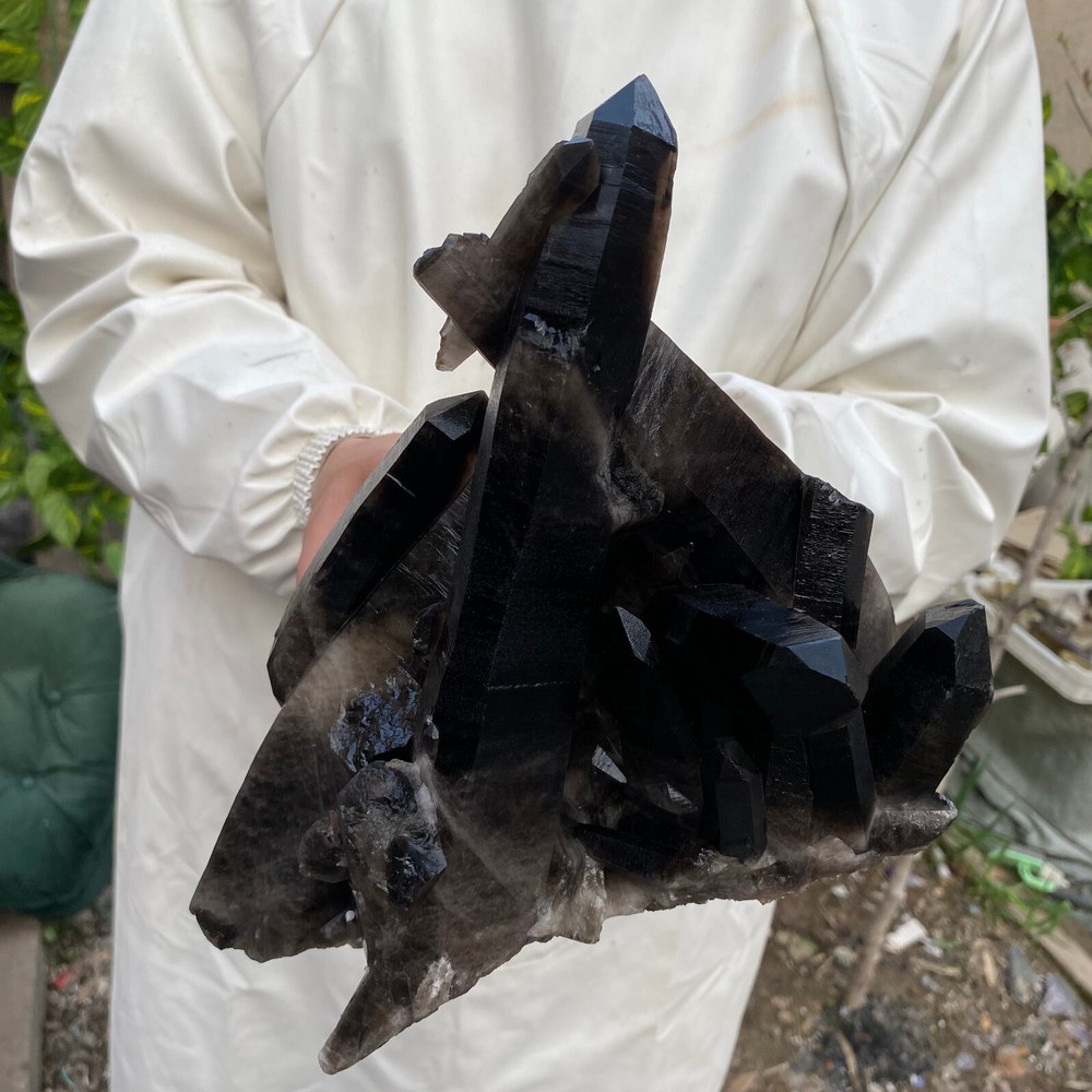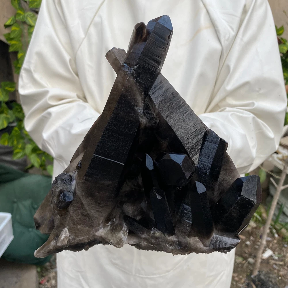 6.8LB Smoky Black Quartz Crystal Cluster Mineral Specimen for Healing