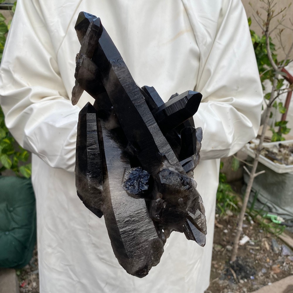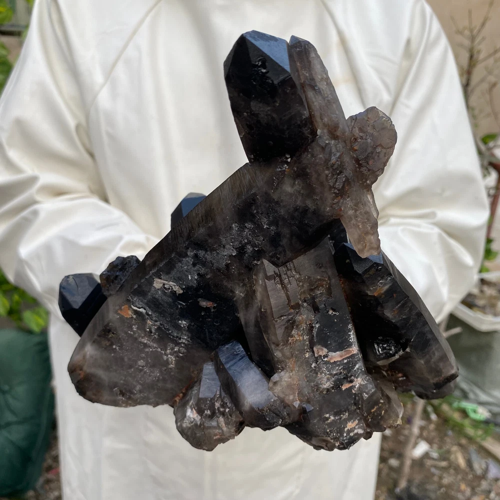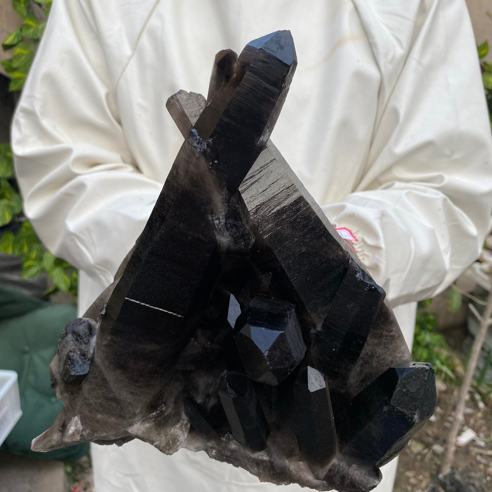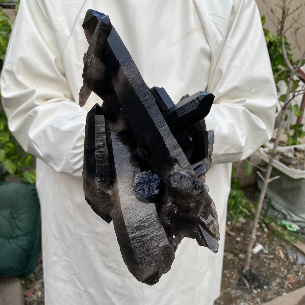 6.8LB Smoky Black Quartz Crystal Cluster Mineral Specimen for Healing