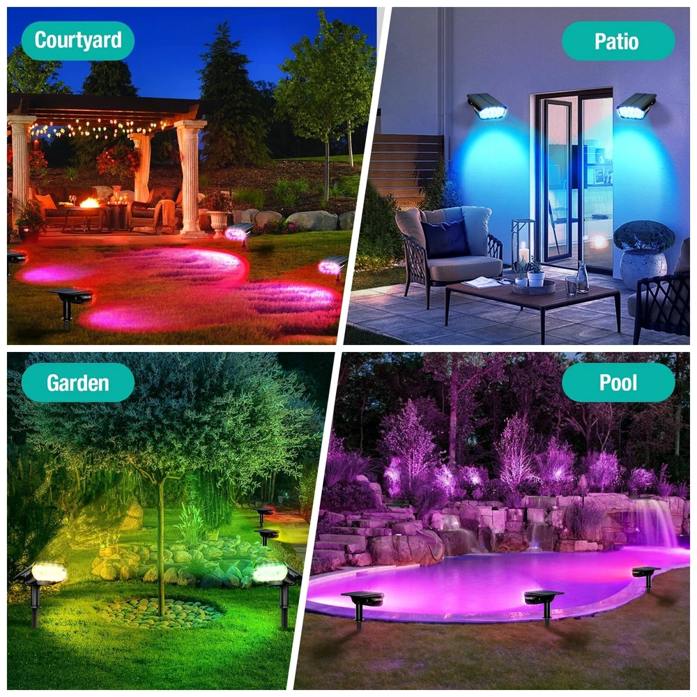 68 LEDs RGBW Solar Spot Lights Outdoor, 1000 Lumens 9 Lighting Modes Color Changing Solar Outdoor Lights, IP67 Waterproof Solar Spotlight 2-in-1 Landscape Garden Light for Yard Patio, 4 Pack Product Details Color: Multi-colored-4Pack Brand: AOUNQ MPN: AO-AO-USA 64LED Color UPC: 726929081462 EAN: 0726929081462 Brand: AOUNQ Color: Multi-colored-4Pack Material: High-impact ABS Plastic, High Efficiency Monocrystalline Silicon Style: Garden Light fixture form: Spotlight Product Dimensions : 5.7 x 4.13 x 9.84 inches; 2.42 Pounds Item model number : AO-AO-USA 64LED Color Batteries : 1 Lithium Ion batteries required. (included) Date First Available : September 20, 2023 Manufacturer : AOUNQ Country of Origin : China Customer Reviews: 4.0 4.0 out of 5 stars 253 ratings Brand: AOUNQ Color: Multi-colored-4Pack Material: High-impact ABS Plastic, High Efficiency Monocrystalline Silicon Style: Garden Light fixture form: Spotlight Room Type: Yard Product Dimensions: 5.7"L x 4.13"W x 9.84"H Specific Uses For Product: Provides bright and beautiful lighting for patios, decks, porches, walls, gardens, landscaping, pathways, flags, decorations, lawns, backyards, and more Indoor/Outdoor Usage: Outdoor Power Source: Battery-powered, Solar-powered, Or USB Charge Installation Type: 2-IN-1 Solar Spot Lights Outdoor: 1.With ground stakes and wall mounts. you can easily insert it into the ground as a solar landscape lights.2.Use screws (included) to fix it on the wall as a wall light Special Feature: Adjustable Color Temperature, New Super Bright 64 LEDs Solar Outdoor Lights for Yard Control Method: Touch Light Source Type: LED Finish Type: Polished Number of Light Sources: 64 Voltage: 5.5 Volts Theme: Flag Light Color: Multicolor Included Components: 4-pack lights in One Package, Each light consists of 64 led light Bulbs. Lighting Method: Adjustable Item Weight: 2.42 Pounds Number of Items: 4 Wattage: 2.1 watts Controller Type: Push Button Switch Type: Push Button Unit Count: 4.0 Count Water Resistance Level: Waterproof Brightness: 1000 Lumen Mounting Type: Wall Mount Fixture Type: Non Removable Assembly Required: No Manufacturer: AOUNQ UPC: 726929081462 Recommended Uses For Product: Light up trees or flags, porches, paths, swimming pools, patios, gardens, garages, driveways, paths, and more. Model Name: AO-AO-USA 64LED Color Part Number: AO-64-color Item Weight: 2.42 pounds Country of Origin: China Item model number: AO-AO-USA 64LED Color Batteries: 1 Lithium Ion batteries required. (included) Finish types: Polished Special Features: Adjustable Color Temperature, New Super Bright 64 LEDs Solar Outdoor Lights for Yard Batteries Included?: Yes Batteries Required?: Yes Bulb Features: Dimmable Color Temperature: 6500 Kelvin Date First Available: September 20, 2023 Super Bright 64 LEDs RGBW Solar Landscape Spotlight: The upgraded outdoor solar spotlight is equipped with an astonishing 64 RGBW LEDs (market leading), scientific and efficient LED arrangement makes it easy to generate 2700K~6500K+ 120o wide angle light output up to 1000 lm. Solar Spot Lights create the perfect lighting effect whether installed in the garden, yard or garage, pathway, etc. And let you enjoy the beautiful colored lights on the dark night without paying high electricity bills. 9 Lighting Modes of Outdoor Solar Lights & Auto ON/OFF: The solar lights outdoor waterproof have 9 lighting modes set to meet your needs in different scenarios-White, Rainbow, Red, Green, Blue, Lemon Yellow, Purple, Cyan, Color cycling, you can switch between modes by button. The solar panel of the solar spot lights have a light sensor, which can be automatically turned on and off according to the change of light in the environment. High-impact Material & IP67 Waterproof: High-strength PC+ABS material and thickened waterproof silicone layer design make the solar spotlights outdoor waterproof have strong IP67 waterproof and High-impact characteristics, can withstand the minimum -4F, the maximum 160F the external ambient temperature. Whether it is severe weather such as storm, heavy rain, snow, high temperature or other extreme weather, you can use solar lights with confidence. Efficient Solar or USB Charging & Longer Lighting Time: In addition to being equipped with larger area, more efficient polycrystalline silicon solar panels and 2000mAh battery, spot lights outdoor also supports "solar or USB charging" charging method, which can provide you with up to 20+ hours of lighting time in daily life; even in continuous cloudy days or lack of sunlight in winter, it can be powered by a USB charging cable (included) Fast charging, easy to solve your electricity anxiety. BUY "ONE" GET "TWO" - 2 In 1 Function & Easy Installation: With ground stakes and wall mounts, you can easily insert it into the ground as a solar landscape lights to illuminate your palm trees, agave, etc. It is fixed to the wall as a solar wall lights (with screws) to illuminate flag or wall. Both installations are easy to install and perfect for house, front door, yard, patio, fencing, garden, swimming pool, garage, driveway, pathway, porch, deck, flower bed and landscape lighting and more.