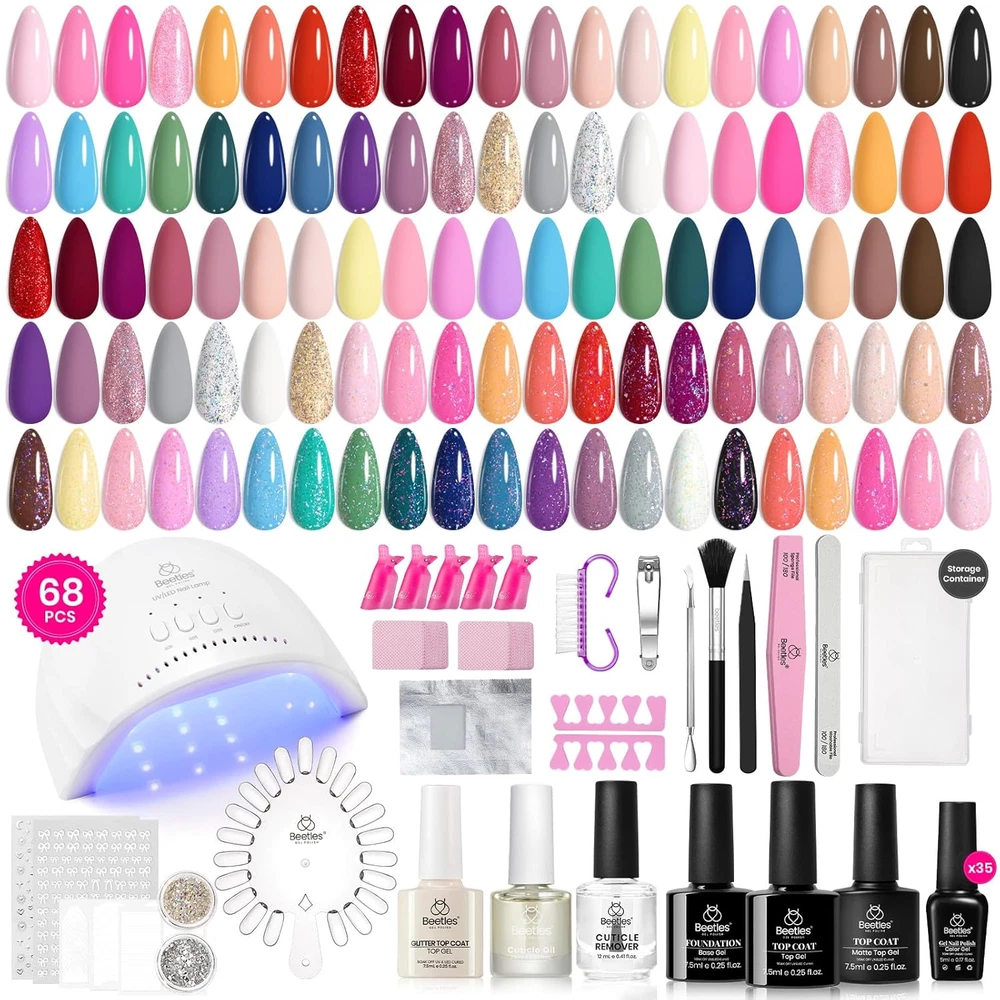 Store New Arrivals Add to Favorite View Feedback Contact Fast deliveries to the customer's home Quality customer service John Make the customers happy! Beetles Gel Nail Polish Kit with U V Light - 68 Pcs Set 35 Colors Pink Glitter Nude Gray Gel Polish with Base Matte&Glossy Top Coat Vivid Seasons Gel Nail Set Nail Art Valentine’S Day Gifts for Women Description ALL-IN-ONE Gel Nail Kit: Gel Polish 5ml*35 Base coat 7.5ml*1 Glossy top coat 7.5ml*1 Matte top coat 7.5ml*1 Glitter top coat 7.5ml*1 Cuticle oil 7.5ml*1 Cuticle remover 12ml*1 UV/LED nail lamp with adapter*1 Tweezers*1 Nail separators*2 Cuticle pusher*1 Nail dust brush*1 Handle Grip Nail Brush*1 Nail file*1 Nail buffer*1 Nail clipper*1 Nail swatches*2 Nail clips*5 Nail decorations*2 French tip nail stickers*3 Nail stickers*2 Remover Foil Wraps*20pcs Cotton pads*100pcs Plastic storage container*1 【Perfect Gift for Girl&Women】: Our beetles gel nail polish kit with UV light has a range of beautiful colors to choose from, making it the perfect gift for any occasion like christmas. It can be matched with different styles of clothing, and can accompany you to the workplace, outdoors, rural scenery, seaside vacation. Under the proper application, nail art beauty keeps 3~4 weeks with perfect shine. 【Upgraded UV Nail Lamp】: With a powerful 24W high power and 30 lamp beads, this nail dryer is designed to cure all types of UV and LED gel polishes, ensuring quick and even drying in record time. The innovative infrared sensor function automatically turns the lamp on when your hand is inserted, making the curing process a breeze.Three convenient curing settings, 30s, 60s, and 120s, are perfect for a quick touch-up or a thorough curing session 【Long Lasting and Shiny】:Our gel nail beauty gift sets is formulated to deliver breathtaking results that will turn heads for up to a stunning 21 days. Chip-resistant, fade-resistant, and incredibly long-lasting, this polish is a true keeper.when you use our base and top coat together with our gel nail polish, you will find that the base coat ensures your manicure adheres perfectly to your nails, while the top coat provides a durable shield, keeping your polished nails pristine and vibrant. WARNING: May cause an allergic reaction by skin contact. Read directions for use carefully. Professionally formulated and only used for nails. Avoid contact with eyes, mouth, and skin. In case of contact with them, rinse immediately with water. If there is any incident, contact the doctor immediately. Stop using the product if redness and itching develop. Keep out of the reach of children. If you have any questions or need assistance, please don't hesitate to reach out to us. Product Description More Choices For Creation Add to Cart Add to Cart Add to Cart Add to Cart Add to Cart Add to Cart Add to Cart Customer Reviews 4.4 out of 5 stars 15,492 4.7 out of 5 stars 3,542 4.4 out of 5 stars 310 4.5 out of 5 stars 9,913 4.6 out of 5 stars 463 4.3 out of 5 stars 779 4.4 out of 5 stars 136,073 Price $41.99 $ 41 . 99 $17.99 $ 17 . 99 $9.99 $ 9 . 99 $24.99 $ 24 . 99 $13.99 $ 13 . 99 $29.99 $ 29 . 99 $8.99 $ 8 . 99 Colors 68 Pcs 12Colors 1 Color 20 Colors - 36 Colors 1pcs Feature Perfect for All Easy to use Fast Drying No Need Uv Lamp Shine Finish and Long Lasting Perfect for All Shine Finish and Long Lasting Shine Finish and Long Lasting Feature New Arivial Perfect for All Available all year round New Arivial New Arivial New Arivial Perfect for All Hot Sale ✔ ✔ ✔ ✔ ✔ ✔ ✔ Beetles Gel Polish ✔ ✔ ✔ ✔ ✔ ✔ ✔ The video showcases the product in use. The video guides you through product setup. The video compares multiple products. The video shows the product being unpacked. Color 1- Vivid Seasons Material Plastic Included Components Top Coat, Gli, Gel Nail polish Finish Type Glossy Package Dimensions 9.13 x 8.39 x 7.72 inches; 4.3 Pounds ABOUT US We offer the best prices around on high quality products. Our E-store includes media such as books, movies, music and games while offering electronics, toys, sporting apparel, clothing, tools, general home, garden items and more. SHIPPING We are always working hard to ensure your package arrives as soon as possible. Please understand that some factors like weather, high postal traffic, and the performance of shipping companies are outside of our control. We offer free shipping to the lower 48 states and ship within 2 business days of payment, usually sooner. We do not accept P.O. Boxes. Please provide a physical address. For shipping outside of the continental USA, we only use eBay's Global Shipping Program. The item is shipped to KY and then sent to the rest of the world. International customers are responsible for all duties and taxes. Continue to 'check out' to calculate costs for shipping the item to your country. Messages regarding eBay's Global Shipping Program MUST be directed at eBay EXCLUSIVELY. RETURNS We offer a 30-Day Return Policy on items in which you are not completely satisfied with. You have the option of a full-refund or an exchange of the item. No returns are available on items shipped outside of the USA PAYMENT We accept PayPal. CONTACT US This page content is yet to come Please ad us to your favorite seller and visit again later Thank You CUSTOMER SATISFACTION We try our very best to make sure every customer is completely satisfied. If there's a problem, message us! We're happy to help. WE ACCEPT