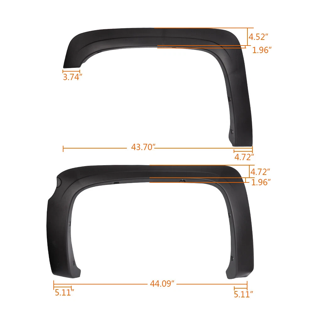 AUTOMOTO PRODUCT 69.3" Short Bed Fender Flares Set Fit For 2007-2013 Silverado 1500 Fleetside Product Introduction Title: Fender Flares Set Application: For 2007-2013 CHEVY SILVERADO 1500 LT / LTZ / WT / LS / HYBRID / XFE WITH 69.3” BED FLEETSIDE MODELS ONLY Fleetside Models only ONLY FIT 5.8' SHORT BED Do not fit long bed models Colousr: Textured Black Descriptions: 100% new, never been used or installed Exactly same as picture ! Comes with 1 set of 4 pieces fender flare (2 for front and 2 for rear) Made of high quality polypropylene Pocket-Riveted Style Fender Flares are Custom-Designed for Your Specific Application Hardware for installation are included To protect wheel from mud, scratches, sand and other outer damage Gives your vehicle upgrade, refresh look No cutting or trimming needed; some drilling may be required Professional installation is highly recommended Package Including: Four (4) Wheel Fender Flares Necessary mounting hardwares Note: All of the items in our shop will come to you with the tracking number. Visit shop home WELCOME to our ebay shop CONTACT US We Open 7 Days A Week ABOUT US ABOUT US: Welcome to GPLUS's eBay Store. We specialize in aftermarket automotive car parts and is the #1 industry distributor for affordable and quality products. Welcome to GPLUS's eBay Store. We specialize in aftermarket automotive car parts and is the #1 industry distributor for affordable and quality products. Welcome to GPLUS's eBay Store. We specialize in aftermarket automotive car parts and is the #1 industry distributor for affordable and quality products. SHIPPING Shipping Information All items will ship within 24 hours (Monday - Friday). Payment cleared/received on Friday will be shipped on the next business days (Monday or Tuesday). We are not responsible for carrier transit time. This information is provided by the carrier and excludes weekends and holidays. Note that transit times may vary, particularly during peak periods or in climate weather conditions, and that delivery times frames will need to be extended for any processing time frames in excess of 1-2 business days. excess of 1-2 business days. International Shipping: International buyers are responsible for possible customs fees, brokerage fees or duty fees. We would appreciate for understanding of tracking number would not be updated in between the city of departing in the U.S. and the city of destination. ATTENTION Cargo transportation Double check shipping address. We are not responsible for incorrect or undeliverable addresses. Please use Shipping & Payments tab on top of page for shipping details for your location. Transaction will be held until a full shipping amount received. Shipping address Some of the packages cannot be delivered to a PO Box. Customer is responsible to ensure PO Box address given is deliverable by the shipping company. Package will be held until a valid physical address is provided. Customer assumes shipping charges incurred in shipping to undeliverable address. Customs duties International buyers are responsible for all customs duties, taxes, and other applicable fees incurred by the country's customs/border regulations. Please contact customs for more information. We are not responsible for any changes to address after item has been shipped. RETURN please notify us within 30 days after you've received your purchased item. Return Policy: Buyers pay for return shipping fee. Items to be returned must be in resalable condition.14 Days money back, please notify us within 14 days after you've received your purchased item. If your order has been received and it is not what you ordered, or if your item has a manufacturer defect, please contact us within 14 days from delivery date. And you must contact us to request an Return Merchandise Authorization Number (RMA). No return package will be accepted without a valid RMA number. All products are covered by our warranty against defects. EMAIL click here for questions All return requests must be submitted through your eBay account. Iterms and Condition For emissions related items, please check with your local jurisdiction for emission specific requirements before purchasing. All items do not come with installation instruction unless otherwise specified. If item is questionable, please consult your local professional/mechanic before making purchase.