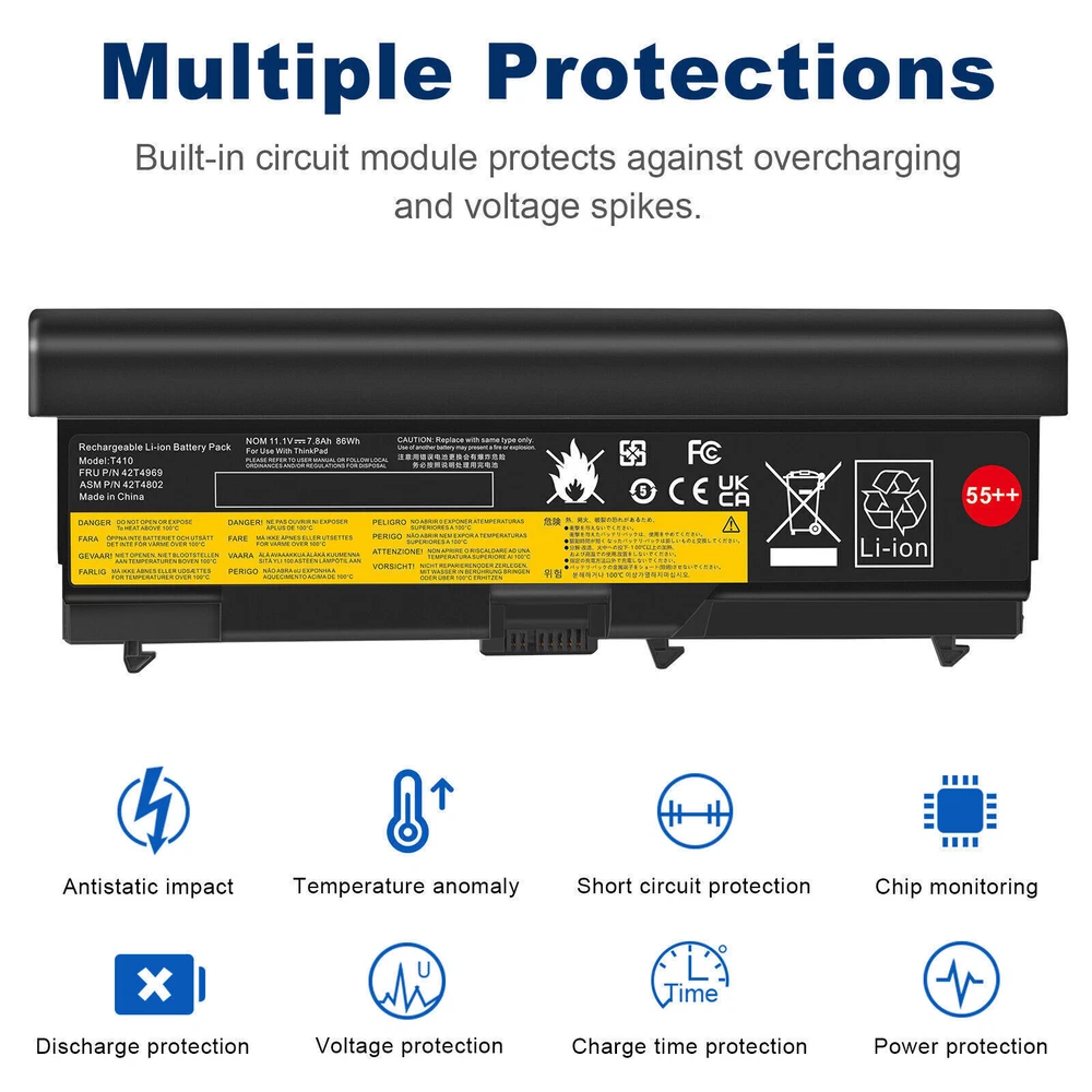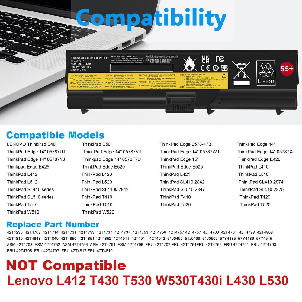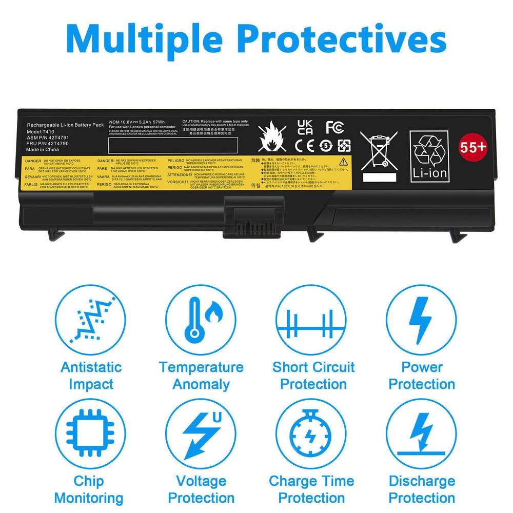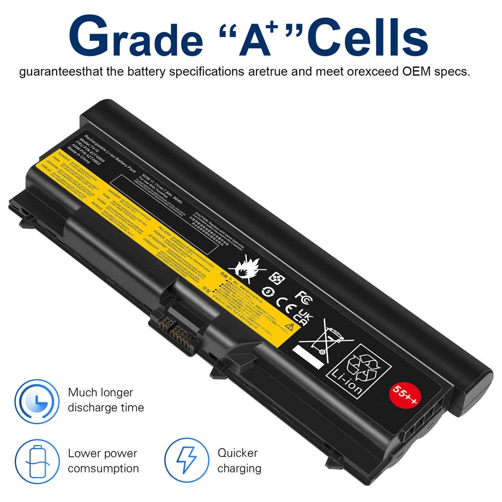 ✅6/9Cells Battery for Lenovo ThinkPad T410 T420 T510 T520 W510 SL410 SL510 E40 About us: ➡️We are a laptop battery manufacturer with more than many years , we are positioned for high quality, simplicity and durability. Our products are stable, safe and reliable in performance,and all batteries are made of Grade ''A'' cells . ➡️ If you have any question, pls feel free to contact us first instead of opening any form of case. Contacting our customer service is the best way to better cooperate with each other,thanks a lot. ➡️ Before purchasing, pls confirm that your model/capacity/size is compatible with your laptop . If you don’t know your model, you can provide us a picture of the appearance of the old battery for us to confirm. ➡️ Your positive feedback are the driving force for us to move forward. Specification: Battery type: Li-ion Voltage: 11.1V(Compatible with 10.8V) Capacity: 5200mAh / 7800mAh Cell: 6 / 9 Cells recharge cycles: 500 Operation time: Around 2.5-3.5 hours Compatible Models: ( Ctrl + F for fast search ur laptop model) For LENOVO ThinkPad E40 E50 ThinkPad Edge 0578-47B ThinkPad Edge 14" 05787UJ 05787VJ 05787WJ 05787XJ 05787YJ 0578F7U ThinkPad Edge 15" E420 E425 E520 E525 ThinkPad L410 L412 L420 L421 L510 L512 L520 ThinkPad SL410 SL510 series ThinkPad SL410 2842 ThinkPad SL410 2874 T hinkPad SL410k 2842 ThinkPad SL510 2847 ThinkPad SL510 2875 ThinkPad T410 T420 T510 T520 ThinkPad W510 W520 Compatible Part Numbers: 42T4235 42T4708 42T4714 42T4731 42T4733 42T4737 42T4737 42T4753 42T4756 42T4757 42T4757 42T4763 42T4764 42T4798 42T4803 42T4819 42T4848 42T4849 42T4850 42T4851 42T4852 42T4911 42T4911 42T4912 51J0499 51J0499 51J0500 57Y4185 57Y4186 57Y4545 ASM 42T4703 ASM 42T4752 ASM 42T4756 ASM 42T4794 ASM 42T4796 FRU 42T4702 FRU 42T4751 FRU 42T4755 FRU 42T4791 FRU 42T4793 FRU 42T4795 FRU 42T4797 FRU 42T4817 FRU 42T4819 Payment Delivery details Warranty & Return About us Contact us Payment 1. We accept payment via Paypay only. 2. All payments must be prepaid. Delivery details 1. Items are generally shipped out within 24-48 hours after your payment has been cleared (Sat. & Sun. excluded.) 2. Orders from the United States will all be shipped out via USPS and FedEx. The shipment usually takes 3-7 business days( Exclude public holiday), if you need the item urgently, please contact us for detail before purchase. 3. We ship to US ONLY and do not support Collection. 4. All items will be shipped to buyer's paypal address. Please check your paypal address before place the order. 5. We are not responsible for wrong or undeliverable address. We reserve the right to charge the shipping fee again for returned items due to wrong address. Warranty & Return 1. We provide 30 days money back on non-defective, undamaged, unused and resalable products. Product is not eligible for refund after the 30-day refund period has expired. 2. Our warranty does not extended to any products that are physically damaged or that are not under normal operating conditions as a result of misuse or improper installation on the buyer/user's part. 3. For all returned products, Please contact us for the returning address and Pls no return case. 4. In all cases, buyers pay shipping fees at their own cost to return products for exchange or refund. We will be responsible for the postage of replacements. Refund will be made upon receipt of the returned item. About us We are a store, mainly run laptop accessory. Such as battery , ac adapter etc. All item passed FCC / CE / ROHS certificates. Help buyer reduce the risk of damage, fire, dangerours mostly. We work with a good quality OEM supplier and factory. Help you and us save money greatly. Contact us Currently, our after-sale workmate good at English. it is better send eBay message in English. You will get our most effetive feedback in time. If you have any question, just send a eBay message is a best solve way between us. If you satifaction our service, leave 5 stars and postifive feedback at our store. It will help our small store development greatly. We will very appreciated for your doing.
