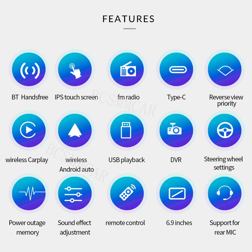 Store Categories Store Categories Other Details 6.9 Inch 1Din For Apple Carplay Android Auto Car Radio Stereo Multimedia Video MP5 Player Bluetooth CPU processor: AC8227L Cortex-A7 quad core processor with a clock speed of 1.3GHz Memory/Storage: 2+32GB optional MCU Control IC: MS51FB9AE PMU power processing IC: MT6323LGA FM/RDS Radio IC: MT6625LN Amplifier IC: 7388 Display screen: 6.9 inches Touch screen: P+G plane Face shell: USB+reset+Bluetooth microphone+remote control receiver Hardware: Standard Single Ingot Universal Machine Installation Dimensions Whole machine structure: single spindle universal Installation method: Single spindle size universal/bracket installation Standard accessories include: hardware bracket/universal Android power and speaker cable/8-way RCA cable/USB cable/reverse RCA cable/GPS antenna/manual/remote control Product function: Audio input supports AUX left and right channels Serial port support: 2 channels (1 protocol communication, 1 external device communication) WIFI: Supports mobile hotspot and wireless WIFI connection Video input: Supports 2 channels (1 reverse rearview input, 1 AUX video input) Audio output: Line output 2.1CH Video output: Supports 1 channel and picture in picture support Front USB: Play media and TYPE-C interface for charging Fangkong: Supports original vehicle Fangkong Reverse rearview camera: switch between reverse and off modes within 2 seconds when in reverse gear, and switch between reverse and AHD modes within 5 seconds. Optional Radio frequency FM: 76.0MHz-108.0MHz/RDS Radio frequency regions: Asia, Europe, Russia, Americas 1, Americas 2, Japan, Southeast Asia Audio format MP3 WMA、AAC、RM、FALC etc MP3、WMA、AAC、RM、FALC Video format MPEG-1/2/4 H264、H263、VC1、RV、RMVB、DivX、Sorenson SparK、Spark、VP8、AVS Stream Photo format: JPG/BMP/JEPG/GIF/PNG Mobile Internet: MirrorLink/E-Link Car Play Android Auto Other functions: multiple languages/multiple startup screens/multiple EQ sound effects/clock function/power-off memory. Parameter indicator voltage: 10-16V Output power: 4 * 45W USB voltage: Vcc_3.3V Protocol IEEE802.11B/g/n compatible with WLAN USB type: USB 2.0 Frequency: 2.4GHz Working temperature: -20~65 ℃ Extreme temperature: -30~80 ℃ Shipping Policy Payment Method Returns Policy Shipping Policy Payment Method Returns Policy Copyright©2017 DataCaciques Home Payment Shipping About us Contact us Store Categories Store Categories Other Details 6.9 Inch 1Din For Apple Carplay Android Auto Car Radio Stereo Multimedia Video MP5 Player Bluetooth CPU processor: AC8227L Cortex-A7 quad core processor with a clock speed of 1.3GHz Memory/Storage: 2+32GB optional MCU Control IC: MS51FB9AE PMU power processing IC: MT6323LGA FM/RDS Radio IC: MT6625LN Amplifier IC: 7388 Display screen: 6.9 inches Touch screen: P+G plane Face shell: USB+reset+Bluetooth microphone+remote control receiver Hardware: Standard Single Ingot Universal Machine Installation Dimensions Whole machine structure: single spindle universal Installation method: Single spindle size universal/bracket installation Standard accessories include: hardware bracket/universal Android power and speaker cable/8-way RCA cable/USB cable/reverse RCA cable/GPS antenna/manual/remote control Product function: Audio input supports AUX left and right channels Serial port support: 2 channels (1 protocol communication, 1 external device communication) WIFI: Supports mobile hotspot and wireless WIFI connection Video input: Supports 2 channels (1 reverse rearview input, 1 AUX video input) Audio output: Line output 2.1CH Video output: Supports 1 channel and picture in picture support Front USB: Play media and TYPE-C interface for charging Fangkong: Supports original vehicle Fangkong Reverse rearview camera: switch between reverse and off modes within 2 seconds when in reverse gear, and switch between reverse and AHD modes within 5 seconds. Optional Radio frequency FM: 76.0MHz-108.0MHz/RDS Radio frequency regions: Asia, Europe, Russia, Americas 1, Americas 2, Japan, Southeast Asia Audio format MP3 WMA、AAC、RM、FALC etc MP3、WMA、AAC、RM、FALC Video format MPEG-1/2/4 H264、H263、VC1、RV、RMVB、DivX、Sorenson SparK、Spark、VP8、AVS Stream Photo format: JPG/BMP/JEPG/GIF/PNG Mobile Internet: MirrorLink/E-Link Car Play Android Auto Other functions: multiple languages/multiple startup screens/multiple EQ sound effects/clock function/power-off memory. Parameter indicator voltage: 10-16V Output power: 4 * 45W USB voltage: Vcc_3.3V Protocol IEEE802.11B/g/n compatible with WLAN USB type: USB 2.0 Frequency: 2.4GHz Working temperature: -20~65 ℃ Extreme temperature: -30~80 ℃ Shipping Policy Payment Method Returns Policy Contact Us Shipping Policy All items will be checked before packing. All items are new and of high quality. Item will be shipped within 1 business days upon receipt of payment, excluding weekends and public holidays. If to USA,we will ship your order by USPS,it will take about 8-12 working days to you,and you can track it on line. If to other country,we will ship your order by China Post or Singapore Registered Air Mail,it will take about 14-21 working days to you,you aslo can track it on line. Delivery time is about 14-28 business days and it may take up to 8 weeks. Payment Method We accept payment by PayPal only ! Payment should be completed within 5 days after buyer places the order,or else an unpaid case will be opened in order to cancel the transaction. If you can not pay in time, please contact us. e-check from PayPal will only be processed once the payment clears. All of the items will be shipped to buyer's EBAY address,please confirm your address on Ebay before you buy.Your order will be usually shipped out the same or next business days once the payment is made and cleared. Returns Policy 30-day Warranty with Exchange for defective, malfunctioned, incorrect or parts-missing items. Please notify us and return the item with all parts and access
