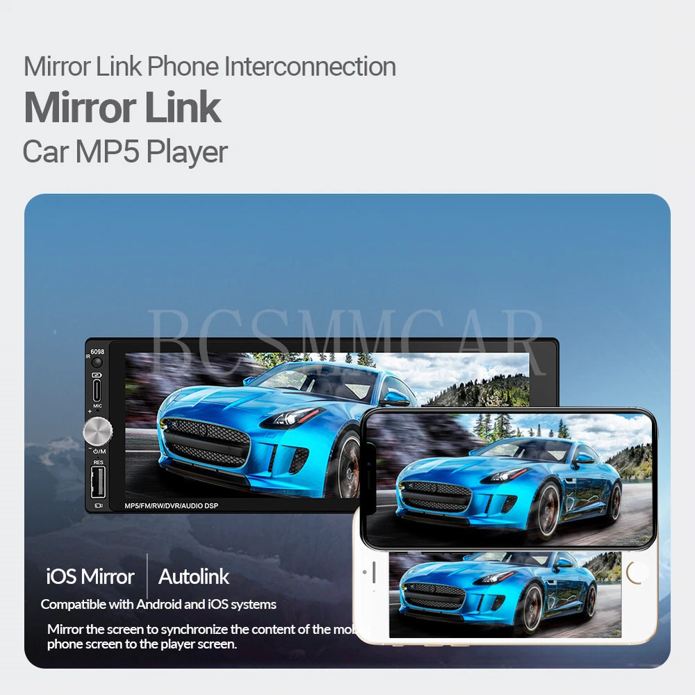 6.9in Stereo Car MP5 Player with BT, Mirror Link, Apple Carplay & Android Auto