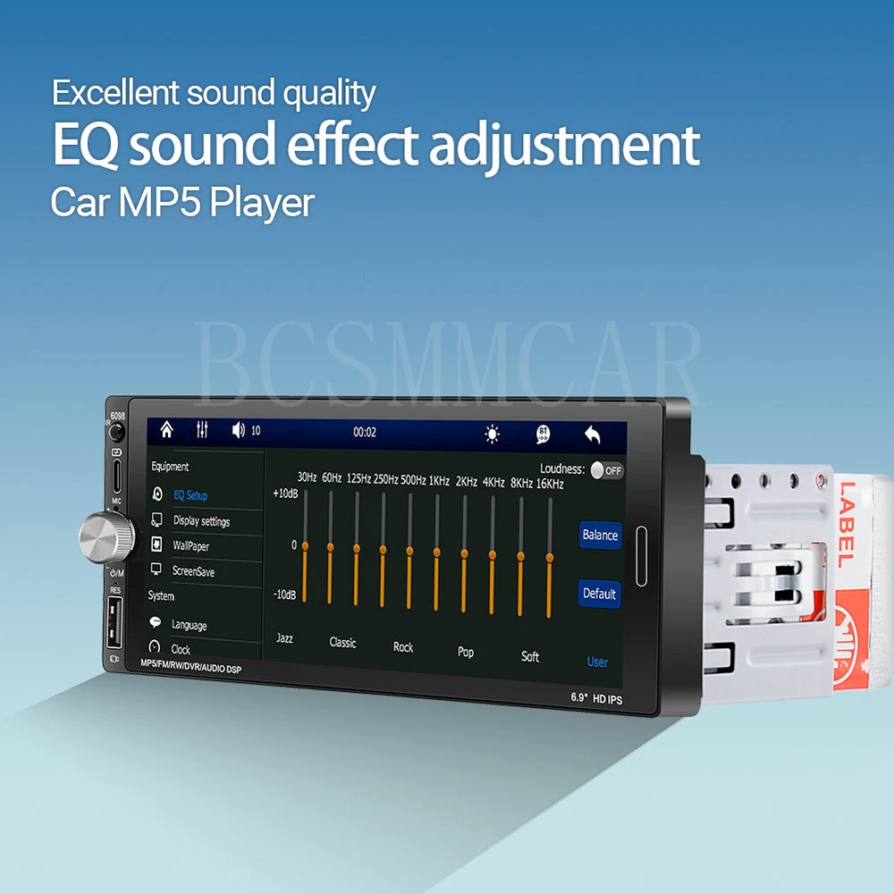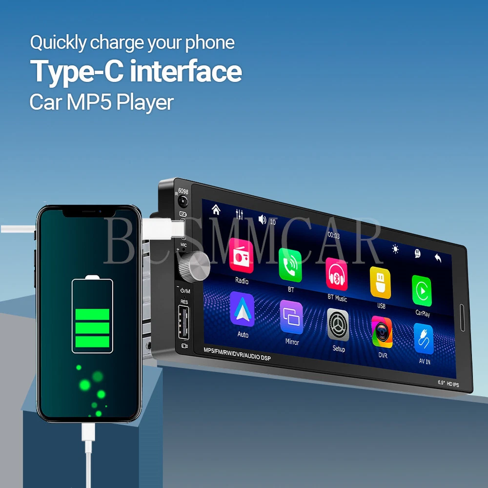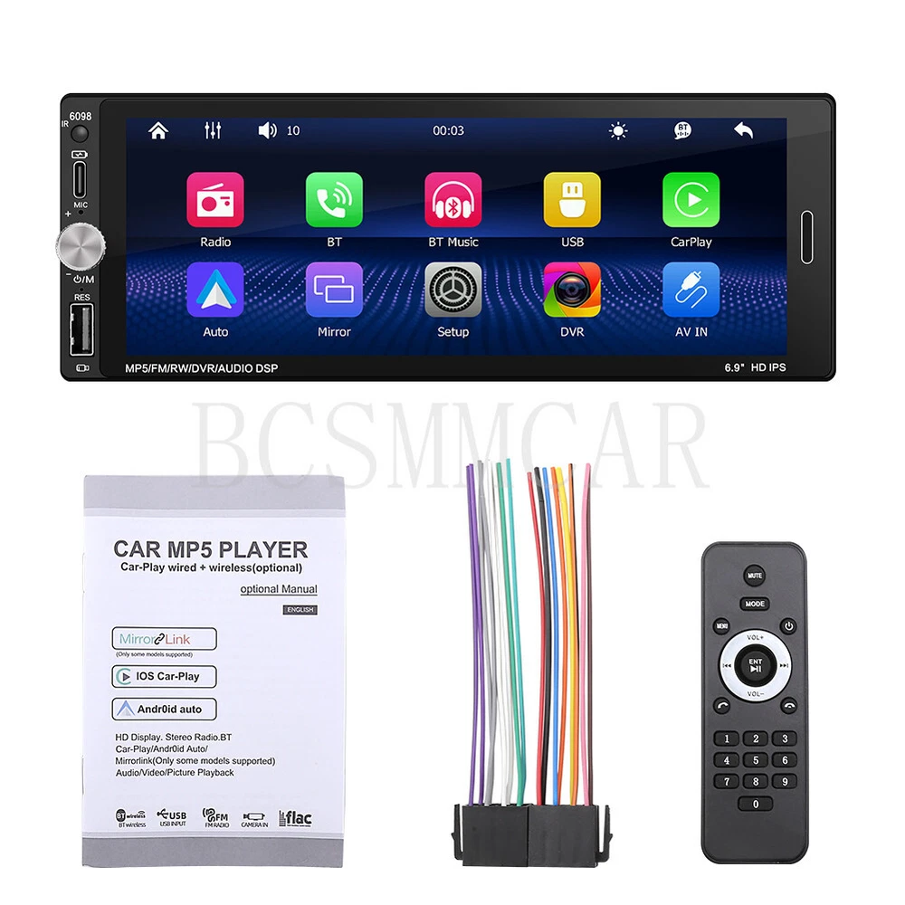 6.9in Touch Screen Car MP5 Player with Apple Carplay BT FM AUX Input