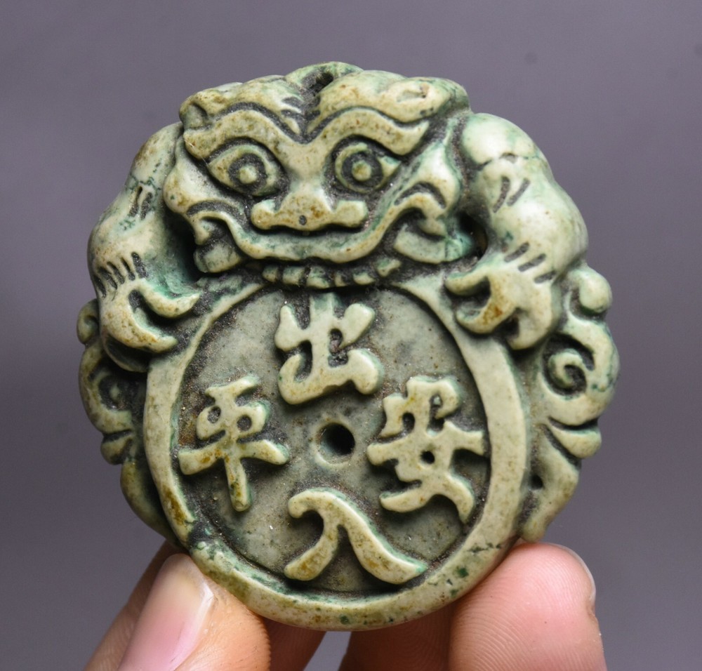 $ 15.848CM Hongshan Culture Ancient Jade Carved Beast Face Mask Amulet Pendant