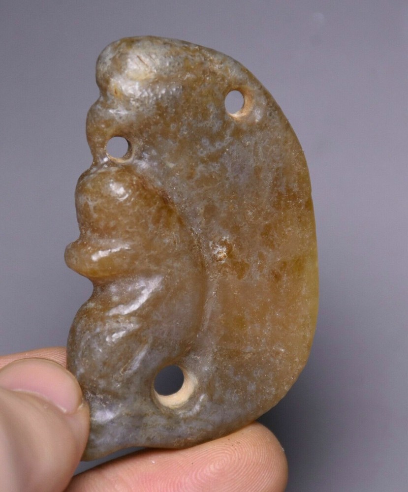 $ 18.4814cm China Hongshan Culture Old Jade Carving Sun God Helios Beast Head Statue