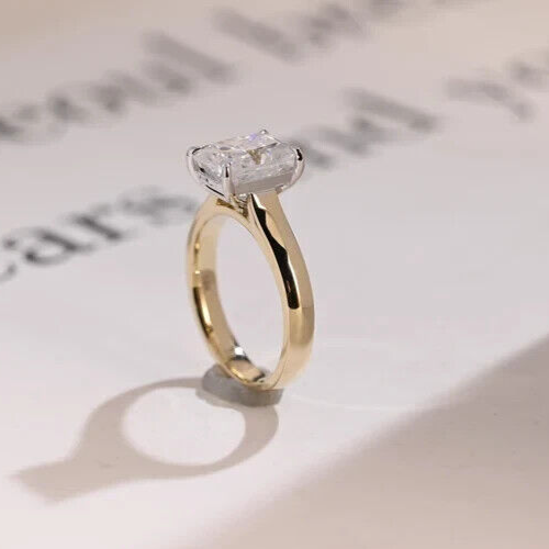 6Ct Emerald Simulated Diamond Engagement Band Ring 14K Yellow Gold Over Silver