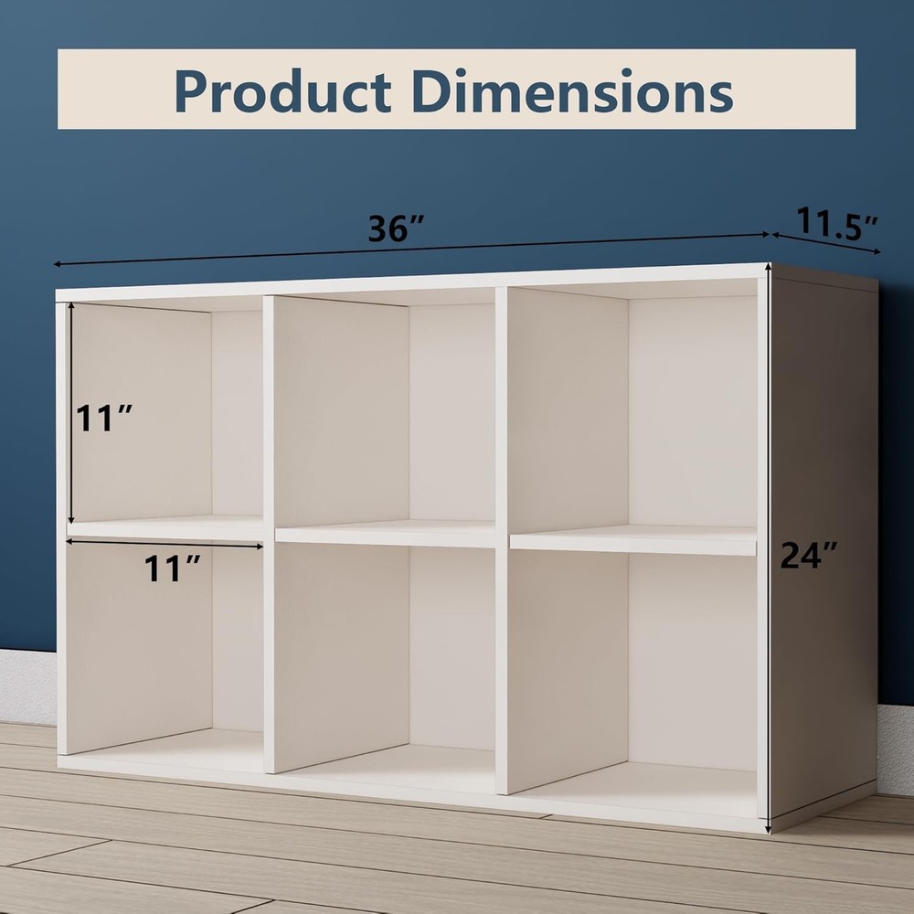 Product Description About this item • Multi-Functional White Cubby Shelf Minimalist finish blends into modern spaces as a bookshelf, TV stand, or display unit. Sturdy MDF + wood frame maintains integrity under decorative loads. • Tip-Resistant & Pet-Safe Cube Structure Engineered with reinforced base + balanced weight distribution for maximum stability on any surface. Prevents tipping even with active pets climbing, ideal for high-traffic homes with cats. • Multi-Purpose Cubby Space for Pets & Storage Freestanding 6-cube design (36"W x 24"H) fits under desks or in corners. Spacious open cubes transform into pet nooks – add cushions to create DIY cat beds or hideouts. • Customizable Wood Cube Storage Removable backboard & modular layout enable flexible configurations. Effortlessly pair with bins/baskets (sold separately) to create personalized cubbies storage organizer systems. • Quick-Assembly Storage Solution Tools-free assembly under 30 minutes with guided hardware. Lightweight yet durable construction allows seamless room-to-room adaptation as needs evolve. On Aug 14, 2025 at 21:27:21 PDT, seller added the following information: