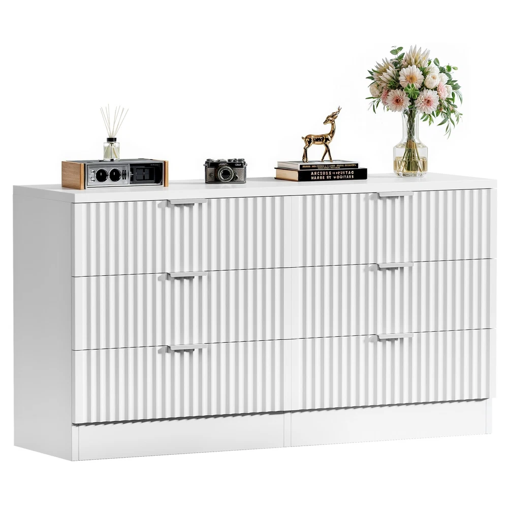 6-Drawer Fluted Panel Dresser TV Stand Cabinet in White