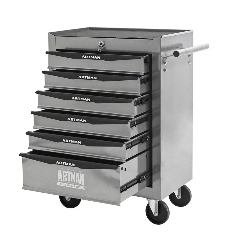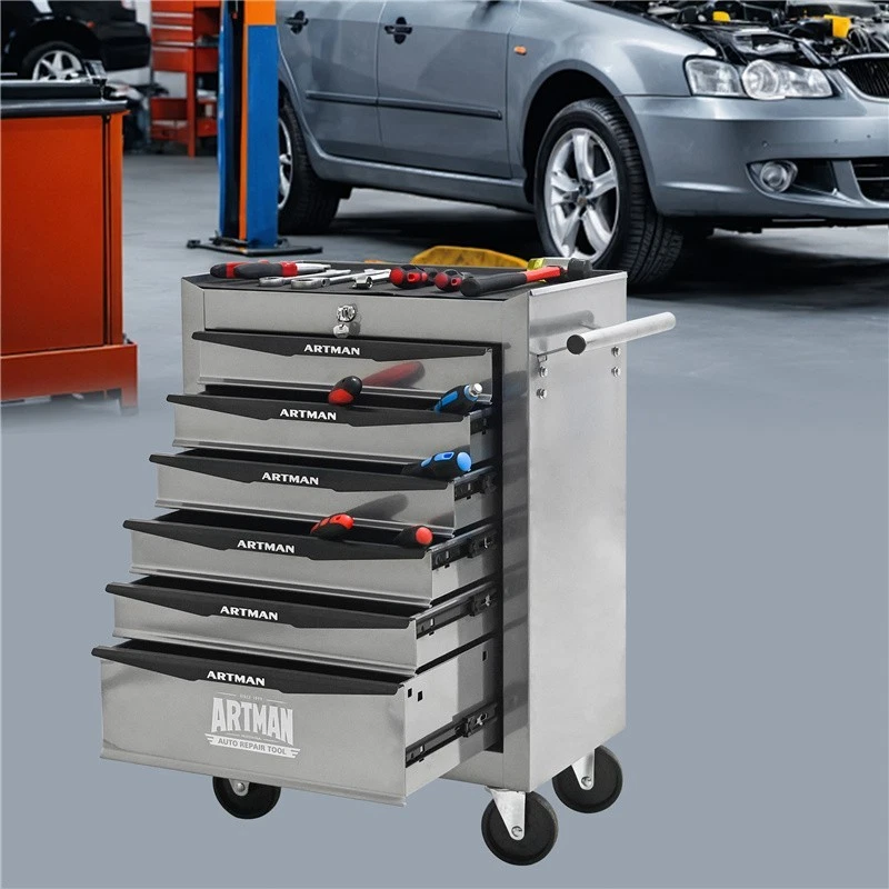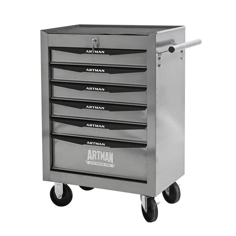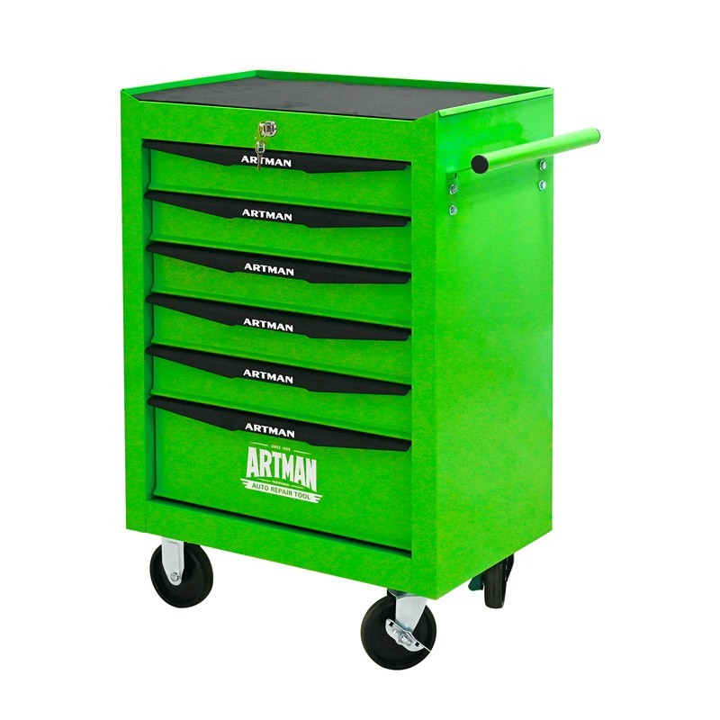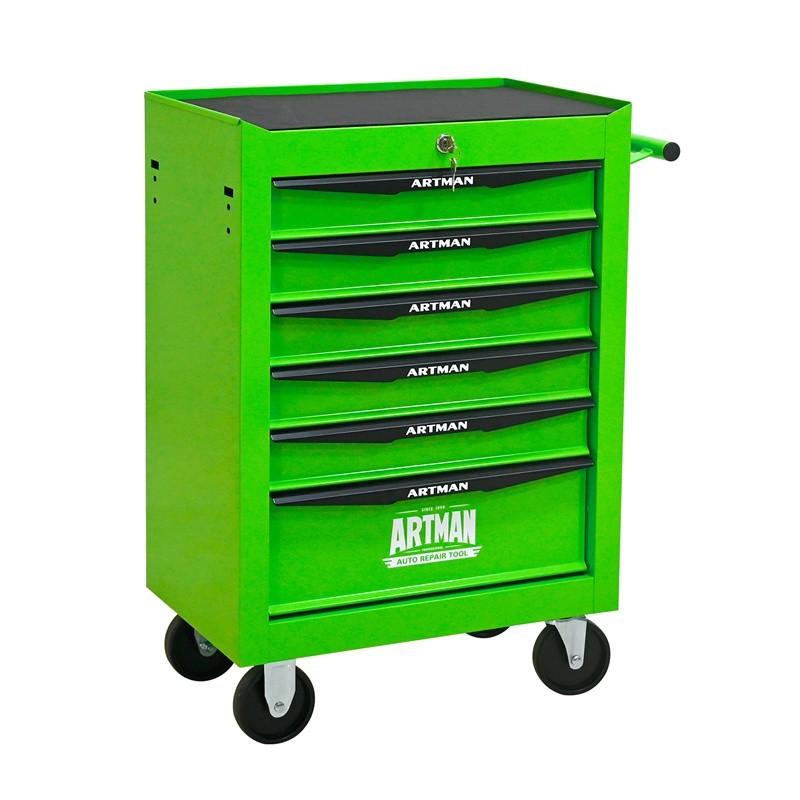 Features and Details: 6 drawers with wheels multi-purpose tool car, black and blue color with more durable The tool box is also lockable and can be used as a removable, attachable and mobile case The opening and closing of the drawers of the tool cabinet is very gentle thanks to the ball-bearing drawers The robust and powder-coated steel construction is used for high wear resistance. This assembly trolley has 4 steering wheels, 2 of which with parking brakes, so you can move the trolley freely in the garage, but also stop in one place Smooth steel countertops are cleaner and more durable. Specification: Color: Green / Silver Metrail:Cold Rolled Steel Surface Finish: Powder Coating Casters: 4" Casters (2PCS with brake and 2PCS without brake) Product Size (with wheels):20.63"L×12.99"W×30.59"H Product Dimensions:20.63"L×12.99"W×25.83"H Product Weight (lbs.): 51.59LBS