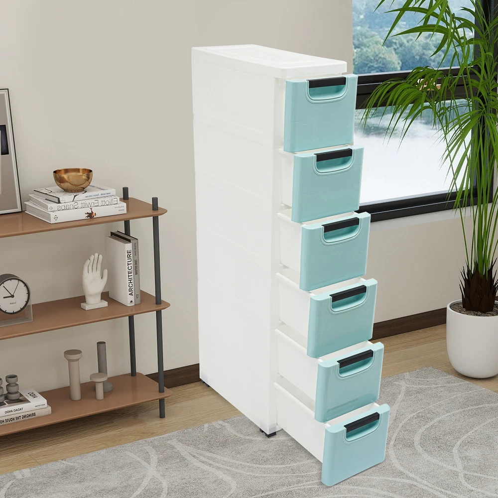 6 Drawers Storage Cabinet, Narrow Space Storage Cabinet Rack for Home Office Description This smartly designed s torage cabinet will provide plenty of space for organizing your belongings. With 6 drawers, it can easily categorize and store your books, papers, and other items to keep your home environment organized. It adopts high-quality PP and has a modern style, combining a tough structure with a beautiful appearance, making it an ideal choice for improving your life quality. Key Features Sturdy and Durable: The high-quality PP and exquisite injection molding process make the product sturdy, non-toxic, odorless, waterproof , and impact-resistant , keeping it practical for long-term use. Strong Load-bearing Capacity: The thickened panels and sturdy structure allow the product to hold a weight of about 77.16 lbs so you can use it with confidence. Thoughtful Design: The drawer has an anti-drop buckle design, which can prevent accidental drawer sliding down and injuring people. Large Capacity: The 6 drawers provide enough space for categorizing and storing your office supplies, kitchen utensils, toys, snacks, clothes, books, or bath products, keeping your belongings more organized and your home environment more comfortable. The top platform can also store some small items, such as cups, potted plants, and photo frames. Easy to Move: It comes with directional wheels that allow you to easily move this cabinet for easy sweeping or move it to another room. Simple Installation: With a simple structure and the English manual, you can finish the installation with less time and effort. Clean with Ease: The smooth surface, simple structure, and removable drawers allow you to easily clean the product with a damp cloth (not included). Space Saving: Its slim body allows you to place it between the furniture or in the narrow corners, making full use of the space in your home. Buy with Confidence: We stand behind all our guests and look forward to assisting you with your purchase. It is our pleasure to answer your confusion and questions. The end of the story between us is not "we sell and you buy". Details Smooth Edges: They are comfortable to the touch and can protect your hands from getting scratched. Convenient Grip: Each drawer comes with a practical grip for you to easily pull drawers out. Application The product is suitable for the living room, bedroom, children's room, study, office, studio, classroom, bathroom, office, or laundry room. Specifications Color: Blue Material: PP Process: Injection Molding Total Load-bearing Capacity: About 35kg/77.16lbs Mount Type: Free Standing Assembly Required: Yes Product Size: 39.88*20*100cm /15.7*7.9*39.4in Package Size: 41*40*27cm/16.14*15.75*10.63in Gross Weight: 5.9kg/13lbs Net Weight: 4.7kg/10.36lbs Package Included 1* S torage Cabinet 1* English Manual Other Needed Accessories Notes Please check the size carefully before ordering. Please allow the slight color difference caused by the shooting light and 1-3cm error due to manual measurement, and make sure you do not mind before you order. Payment Delivery details Terms of sales About us Contact us Payment We accept ebay payment 。 Fees such as import duties, taxes are not included in the item price or shipping costs. These charges are the buyer's responsibility. Delivery details Shipping: 2-9 working days to: USA Terms of sales We maintain high standards of excellence and strive for hundred percent customer satisfaction. Feedback is very important to us. We hope that you contact us immediately before you give neutral or negative feedback, so that we can address your concerns. It is impossible to address issues if we do not know about them! About us Your satis faction is our ultimate goal. We work hard to earn your trust and future business. Our certified technicians have tested each item before shipping. The unit comes with 1 year limited warranty on all manufacturing defects. a) If you receive a defective item, you may return it or ask for a discount. Please contact us within 14 days after you receive the package. b) What you returned must be intact and in its original packaging as re? u. Customer is responsible for shipping costs of the returned item. c) We will cover the cost of shipping back t with the shipping rate indicated in the registration page. We will send you a new unit or refund the full payment you paid. Thank you. Contact us Business Hour Business Hour: Monday To Friday: 8:30 AM to 5:00 PM (Beijing China time) Due to time zones, our reply to your questions may not be immediately. But within above working time, we will reply your email within 24 hours. If it's non-workdays, please kindly be patient and wait till Monday. Please contact us with ebay message. Please feel free to contact us if you have any questions. Monday To Friday: 8:30 AM to 5:00 PM (Beijing China time) Due to time zones, our reply to your questions may not be immediately. But within above working time, we will reply your email within 24 hours. If it's non-workdays, please kindly be patient and wait till Monday. Please contact us with ebay message. Please feel free to contact us if you have any questions. Brand Unbranded Item Height as pics Item Length as pics Item Width as pics Type as pics Color: Blue Material: PP Process: Injection Molding Total Load-bearing Capacity: About 35kg/77.16lbs Mount Type: Free Standing Assembly Required: Yes Product Size: 39.88*20*100cm/15.7*7.9*39.4in Package Size: 41*40*27cm/16.14*15.75*10.63in Gross Weight: 5.9kg/13lbs Net Weight: 4.7kg/10.36lbs On Feb 24, 2025 at 18:21:57 PST, seller added the following information: