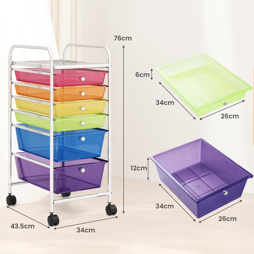 6-Drawer Rolling Storage Cart, Multifunctional Storage Organizer Cart with Wh...