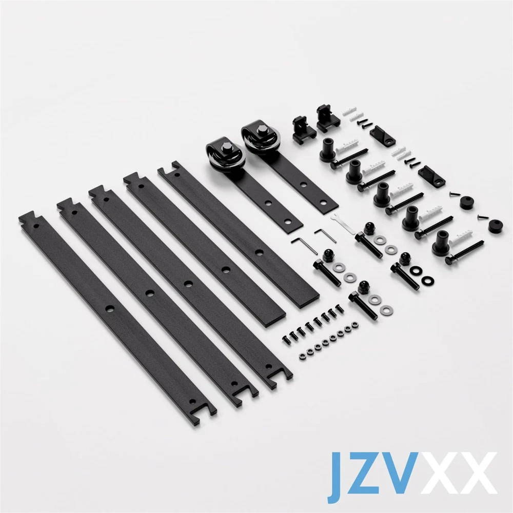 Basic Info: Barn door hardware kit maximum hold barn door for 265 lbs, Fit for door panel thickness from 1.375" to 1.75", Fit for door panel width up to 36"(door not included). Strong and Durable: Barn door track are made of high standard carbon steel with black coating, This greatly increases the robustness of the barn door track and makes it water, dust and rust resistant, all attributes that allow the entire barn door hardware kit to maintain long-term stable operation. Smooth and Quiet: Sliding door kit is based on the POM made wheels(2 bearings inside wheel), which allows the barn door system to slide more silky smoothly and quietly and does not easily cause wear and tear on the track. Less Space Ocuupy: Compared with normal sliding doors, barn doors and hardware included are more space-saving, the space behind your door is not bound, you can easily stack items behind the door, it is your space becomes more neat, this is the biggest reason why we choose barn door system. What Included: 5* barn door track(combine to 6ft), 2* barn door rollers, 2* door stoppers, 2* anti-jump pads, 1* floor guide, 1* maunal. Incase you get any confusion on installation or missing parts ,kindly us via ,we may get back to you in 24 hours. "ONLY BARN DOOR HARDWARE KIT FOR SALE, BARN DOORS ARE NOT FOR SALE."