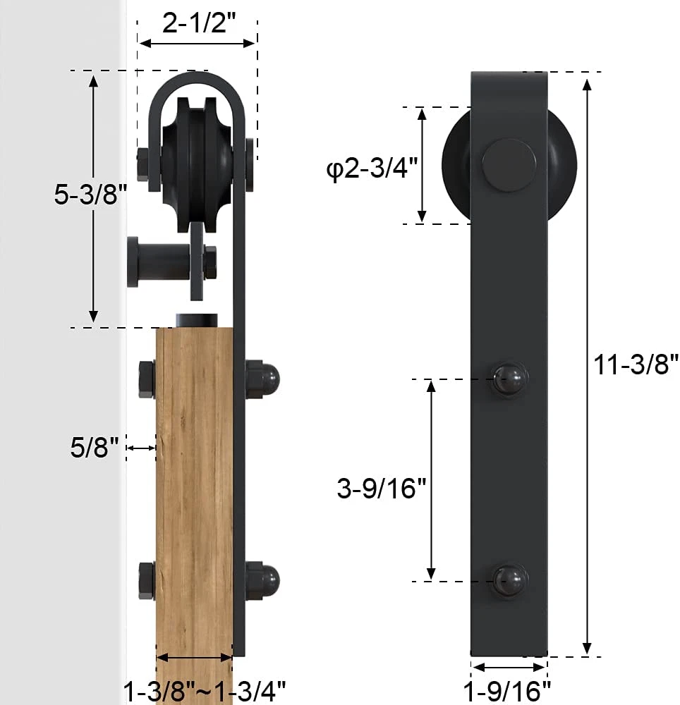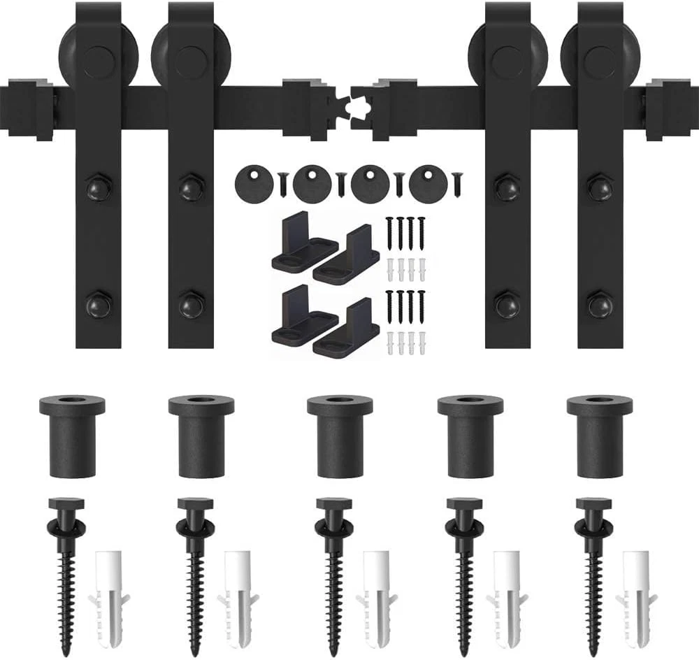 Store New Arrivals Add to Favorite View Feedback Contact 6FT Barn Door Hardware Kit: Double Sliding Door Hardware - Black Barn Door Track Kit - Carbon Steel Heavy Duty Door Rail - J-Shape Easy to Install for 36" Closet Panel(No Door) Description Style 6FT /72" 2 Doors Track Kit Pattern Bending Design Thickness 6 Millimeters Batteries Included? No Usage Install Barn Doors Batteries Required? No Finish Black Product Dimensions 73 x 5 x 4 inches Material High Quality Carbon Steel Handle Material Metal Installation Method Wall-Mounted Maximum Weight Capacity 230 Pounds Is Discontinued By Manufacturer No Item Package Quantity 1 Number Of Pieces 27 Item Weight 19.29 pounds Part Number GCM2086-A Mounting Type Wall Mount Color Double Door Kit Shape Bending Design Included Components 5 x lag bolts and spacers, 4 Door stoppers, 2 X 3FT Track, Steel Hangers, Floor Guide, Anti-Jump Pad, other Screw parts Size 6FT Track Kit Sturdy and durty barn door hardware: The side-mounted sliding barn door kit is made of high-quality carbon steel, that can ensure durability and studity to support barn door weight up to 277 lbs. The surface of barn door track is adhered to a fine black powder coating by high temperature to ensure that it can be used for a long time. How to choose the Double barn door hardware kit: The sliding door track length should be at least double the door width. And there should be a minimum of 5.1" gap between the barn door and the ceiling.Fit door panel width: 32", door panel thickness: 1 3/8" - 1 3/4". It can be paired with wood barn door, closet door, MDF barn doors, and more.(If you have thicker door, and longer pipe clamp screws can be supplied) Quiet and smooth sliding door hardware: The high-quality carbon steel track kit ensures barn door slide smoothly. J-Shape barn door rollers can provide smoother rolling. With carbon steel anti-hopping block and stopper for stable movement and long useing. Easy to install: The barn door hardware kit package include:(1) 2 X 3FT Tracks (5) Wall Connectors (4) Rollers (4) Door Stoppers (2) Floor Guide (1) Installation manual; All necessary hardware is included. And we can provide installation video to make you easier when install the barn door kit.This sliding door hardware takes up to 2 people to install in 40 minutes. If you have any issues, please let us know, and we will do our best to assist you.(DOOR NOT INCLUDED) Versatile sliding barn door hardware: The black barn door track provides a sleek, modern look that can complement various interior design styles, from rustic to industrial, including residential homes, offices, and commercial spaces. Barn door hardware kit allow doors to slide parallel to the wall, saving valuable floor space compared to traditional swinging doors. This makes them ideal for smaller rooms or areas with limited space. Product Description 1 Long Lasting 2 Safe & Reliable 3 Track Connector L Floor Guide 2 installation methods allow you groove the door bottom or not. The floor guide can prevent the doors from swing, allow open and close door freely. Safety-ensuring Measures Anti-jump Pad prevent door be lifted off rail. Install them on the top of your door, it can hold the rail once the door hit the stopper. Heavy Duty Track The anti-scratch high temperature fine black powder coated surface and heavy duty 1/4" thick carbon steel rail will last a long time. Strong Load-Bearing Capacity Quality carbon steels is applied for more sturdy. 8.8 grade self-tapping screws and roller screws can hold two 230lbs doors comfortably. Room Dividers Barn door hardware kits can be used in a variety of applications, both practical and decorative. They are great space-saving solutions. Sliding Doors Barn door hardware kits can be used in a variety of applications, both practical and decorative. They are great space-saving solutions. Kitchen Cabinets Barn door hardware kits can be used in a variety of applications, both practical and decorative. They are great space-saving solutions. Interior & Exterior Doors Barn door hardware kits can be used in a variety of applications, both practical and decorative. They are great space-saving solutions. Can I cut the rail to fit my wall? Yes, the rail can be cut to any length. We recommend using an angle grinder to cut the rail. What is the weight capacity? Your door limited 230lbs. What is the compatible door thickness? 1-3/8" ~ 1-3/4". Note: If you have door thickness that falls out of this range, please let us know your exact door thickness so that we can put shorter hex bolts for your thinner doors or longer hex bolts and spacer extenders for your thicker doors. When do I need a headboard? a. If the pre-drilled holes in the rail don't line up with your wall studs. b. If there is a doorway trim. Attach a header board with the same thickness as your doorway trim into your studs first, and then mount the rail onto the header board. How to Choose Product from WINSOON shop? Add to Cart Add to Cart Add to Cart Add to Cart Add to Cart Add to Cart Customer Reviews 4.6 out of 5 stars 641 4.6 out of 5 stars 5,031 4.6 out of 5 stars 2,729 4.4 out of 5 stars 1,602 4.4 out of 5 stars 1,602 4.6 out of 5 stars 5,031 — Price $72.90 $ 72 . 90 $51.98 $ 51 . 98 $108.90 $ 108 . 90 $86.24 $ 86 . 24 $79.99 $ 79 . 99 $51.98 $ 51 . 98 — Used For 2 Doors 1 Door 2 Doors 2 Doors 2 Doors 2 Doors 1 Door Door Overlap / / / 8-10" 8-10" 8-10" / Min Space Needed Above Door 6" 8" 5.1" 5.1" 5.1" 8" 5.1" Door Panel Thickness 1-3/8" ~ 1-3/4" 1-3/8" ~ 1-3/4" 1-3/8" ~ 1-3/4" 1-3/8" ~ 1-3/4" 1-3/8" ~ 1-3/4" 1-3/8" ~ 1-3/4" 1-3/8" ~ 1-3/4" Material high quality carbon steel high quality carbon steel high quality carbon steel high quality carbon steel high quality carbon steel high quality carbon steel high quality carbon steel ABOUT US We offer the best prices around on high quality products. Our E-store includes media such as books, movies, music and games while offering electronics, toys, sporting apparel, clothing, tools, general 