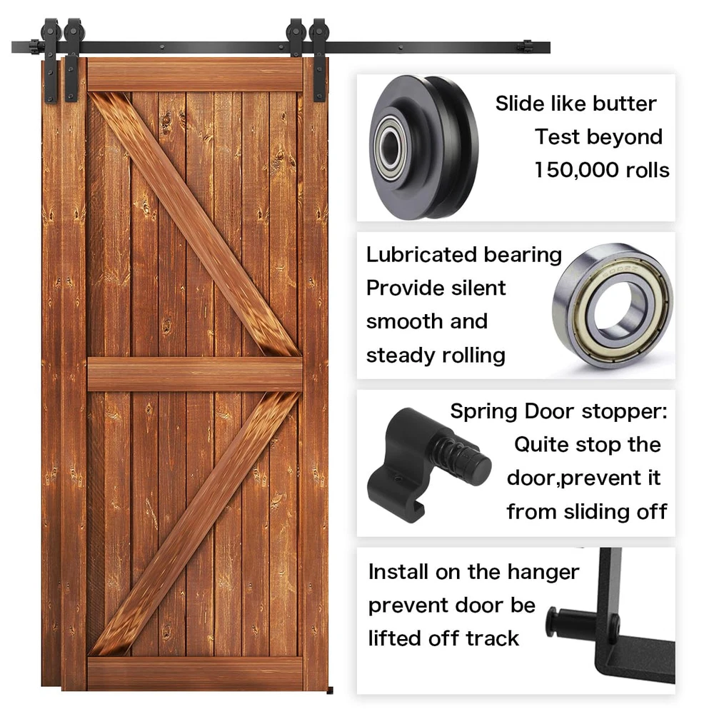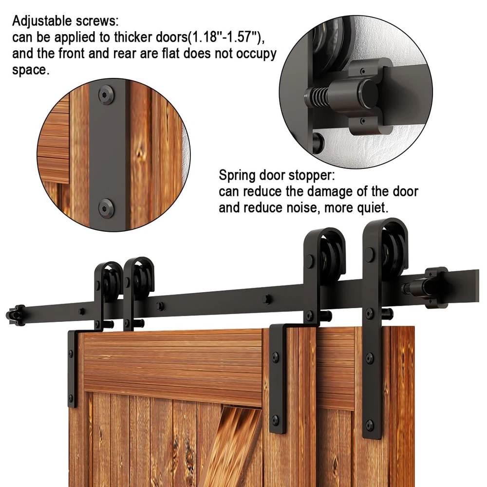 🛠Overlap Space: For Bypass Barn Door Hardware kit, there would be a 6.7" overlap space since the 2 doors are hanging on single rail. Please be reminded that your door panels should be wider than your opening. If not, the 2 rollers will hit when door slide, then drive other door slide. 🛠Package Includes: A Double Barn Door Hardware Kit comes with (6 feet splicing track, Rail Spacers, Rollers, Door Stops, Anti-jump Discs, Floor Guide, Hex Key; All other necessary hardware is included as you see in the pictures.) DOOR NOT INCLUDED. 🛠High Quality Material: The Double Sliding Barn Door Hardware Kit Bypass Made of premium steel black coating, it is waterproof and rust resistant, preventing the kit from scratching, Barn Door Kit provides silent, smooth and steady rolling. Door weight capacity: 330 lbs; fit for door width up to 36"; fit for door thickness from 1.18'' to 1.57''. 🛠Easy to Install: The Single Track Bypass Sliding Barn Door Hardware with Upgraded Combination Track Mode design and Includes Step-by-Step Installation Instruction manual ,Professional install instruction and team to help you solve all problems in time. Step by step service save your cost of finding a carpenter and enjoy joyful DIY. 🛠Service Assurance: We ensure you will get everything you need in a timely manner,we will ship at first time if missed or broken parts from U.S warehouse, any problem in using Double Bypass Barn Door Hardware Kit, our professional staff in the barn door hardware field will answer questions for you in 24 hours.