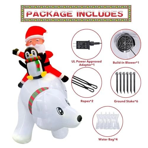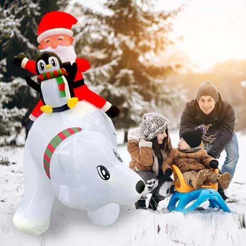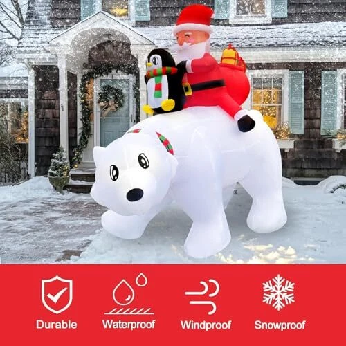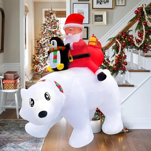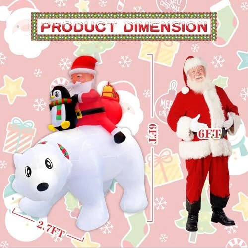 30 Days Return Policy Fast Delivery Trusted seller 6FT Christmas Inflatable Outdoor Decoration, Blow Up Santa Claus Penguin Riding on Polar Bear with Gift Boxes and Built-in LED Lights for Outside Yard Lawn Party Storefronts Product Description [Christmas Focal Point]: Elevate your holiday decor with our stunning Christmas inflatable Santa Claus penguin riding on polar bear with gift boxes. This eye-catching piece instantly transforms any space into a festive wonderland, setting the perfect tone for Christmas seasonal celebrations. [Enchanting LED Lighting]: Our blow up Santa Claus penguin riding on polar bear with gift boxes is adorned with enchanting LED lights that add a magical glow to your decor, creating a warm and inviting ambiance for all who pass through. The lights are energy-efficient, ensuring a dazzling display without excessive power consumption. [Durable and Weather-Resistant]: Crafted from high-quality materials, this Christmas inflatable yard decor is designed to work well for the holiday. Whether it's rain or snow, it will retain its vibrant colors and shape, ensuring it remains a stunning centerpiece throughout the holiday season. [Easy Setup and Storage]: Setting up the Christmas inflatable is a breeze. With an efficient inflation system, you'll have it ready to go in minutes. When the season is over, simply deflate, let it dry and store it compactly for future use, making it a convenient and space-saving addition to your holiday collection. [Versatile Decor Option]: Suitable for a range of settings, including yards, Christmas party entrance, commercial Christmas display, storefronts, and event spaces, this blowup Santa Claus penguin riding on polar bear is a versatile Christmas decoration option. Whether you're hosting a holiday party, decorating a retail display, or enhancing your outdoor landscape, it serves as a captivating focal point that spreads the joy of the season. Shipping Returns Payment Shipping Shipping is FREE to all addresses other than APO/PO boxes in the lower 48 states. All our stock ships from US-based warehouses. Shipped via USPS or UPS (depending on location and package weight) Unless stated otherwise, all orders will ship within 24-72 hours of your payment being processed. Check our feedback to see the great reviews of FAST shipping we offer. Returns As our valued customer, we will do our best to make sure the product you receive arrives to you on time and as expected. If you are not satisfied with your purchase, please contact us within 30 days of receiving your order to process a return. Payment We currently accept payment via eBay managed payments only. Once payment is cleared, we will dispatch your shipment within 1-3 business days. Please refer to the "Shipping" tab for more information regarding shipping speed to your destination.