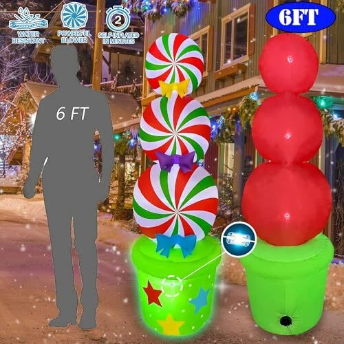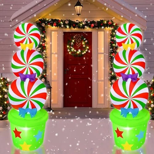 6FT Christmas Inflatables Candy Yard Sign LED Lighted Christmas Inflatable